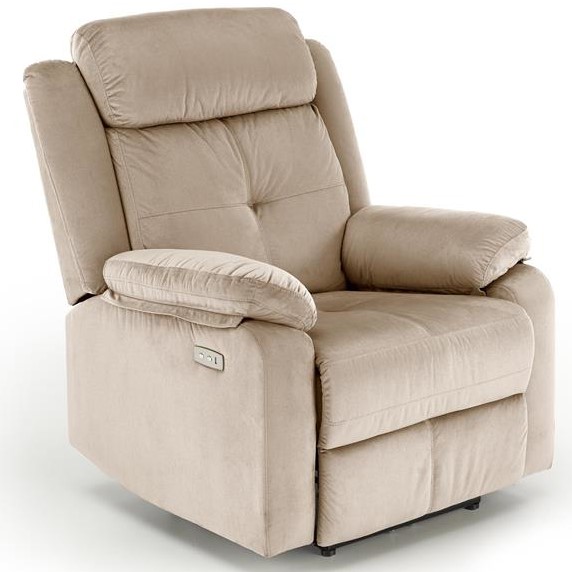 Fotel "Loris" to wyjątkowy mebel, który łączy w sobie nowoczesną technologię z najwyższym komfortem użytkowania. Wyposażony w funkcję elektrycznego rozkładania, umożliwia łatwe dostosowanie pozycji siedzenia do indywidualnych potrzeb. Dodatkowym atutem jest wbudowane gniazdo USB, które pozwala na ładowanie urządzeń elektronicznych bez konieczności wstawania. Fotel został wykonany z wysokiej jakości tkaniny w eleganckim beżowym kolorze, co sprawia, że doskonale wpasuje się w różnorodne aranżacje wnętrz, dodając im stylu i funkcjonalności.