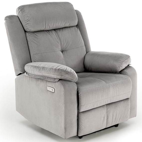 Fotel "Loris" to wyjątkowy mebel, który łączy w sobie nowoczesną technologię z najwyższym komfortem użytkowania. Wyposażony w funkcję elektrycznego rozkładania, umożliwia łatwe dostosowanie pozycji siedzenia do indywidualnych potrzeb. Dodatkowym atutem jest wbudowane gniazdo USB, które pozwala na ładowanie urządzeń elektronicznych bez konieczności wstawania. Fotel został wykonany z wysokiej jakości tkaniny w eleganckim popielatym kolorze, co sprawia, że doskonale wpasuje się w różnorodne aranżacje wnętrz, dodając im stylu i funkcjonalności.