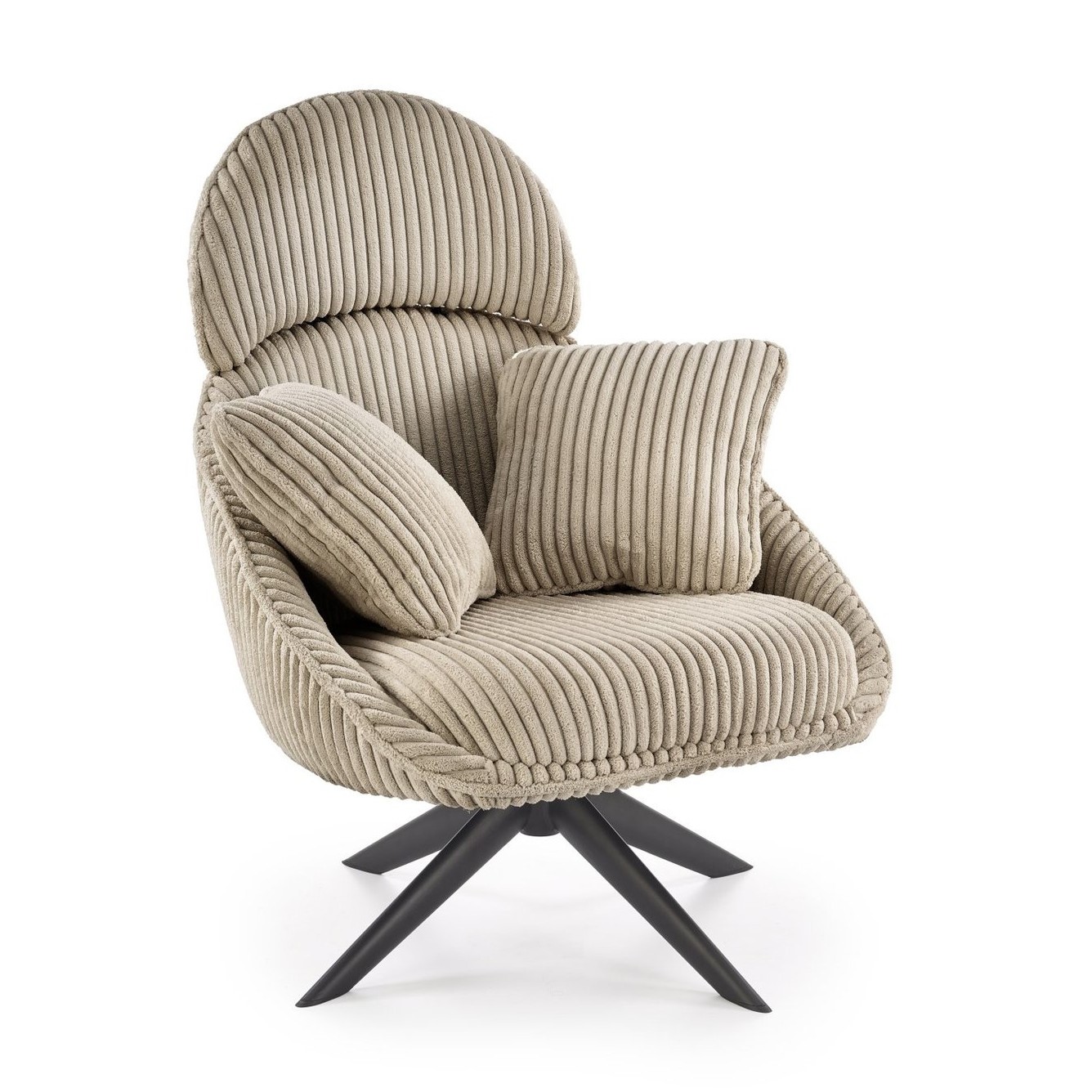 Fotel wypoczynkowy MERRY 2 z funkcją obracania to elegancki i funkcjonalny mebel, idealny do nowoczesnych wnętrz. Tapicerowany jest przyjemną w dotyku tkaniną, co pozwala na dopasowanie go do różnych aranżacji. Wyposażony w funkcję obracania, umożliwia swobodne poruszanie się bez konieczności przesuwania fotela. W zestawie znajdują się dwie poduszki, które zwiększają komfort użytkowania i dodają estetyki. Wysokie oparcie oraz ergonomicznie zaprojektowane podłokietniki zapewniają wygodę podczas długiego wypoczynku. Solidna konstrukcja gwarantuje trwałość i stabilność mebla.