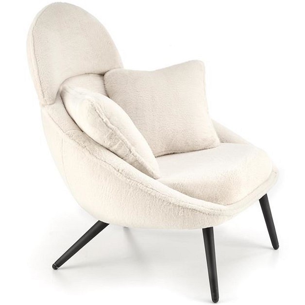 Fotel MERRY to mebel, który wyróżnia się zarówno funkcjonalnością, jak i eleganckim stylem. Fotel pokryty jest miękką i wygodną tkaniną w modnym kremowym odcieniu. Wysokie oparcie zapewnia komfortowy wypoczynek i stabilne podparcie kręgosłupa, dzięki czemu fotel MERRY idealnie nadaje się do czytania, oglądania telewizji czy relaksu. Dodatkowo fotel wyposażony jest w dwie poduszki w tym samym kolorze i tkaninie co tapicerka, które podnoszą komfort siedzenia. Cztery nogi ze stali malowanej proszkowo na czarno nadają krzesłu eleganckiego i nowoczesnego charakteru, a jednocześnie zapewniają stabilność i bezpieczeństwo użytkowania. Fotel GAJA jest zatem idealnym rozwiązaniem dla osób, które cenią sobie zarówno wygodę, jak i elegancki wygląd mebli w domu