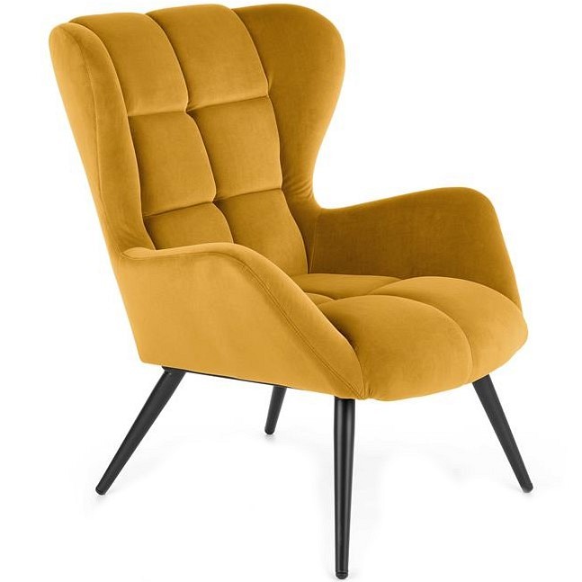 • Tapicerowany wysokiej jakości tkaniną aksamitną w kolorze musztardowym