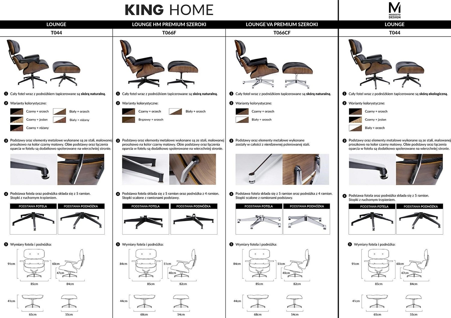 Fotel LOUNGE marki MODESTO DESIGN, czarny, z podnóżkiem z drewna orzechowego. Cały fotel i podnóżek tapicerowane są ekoskórą w kolorze czarnym. Korpus i podnóżek fotela wykonane są z giętego na gorąco drewna. Podstawa oraz elementy metalowe wykonane są ze stali, malowanej proszkowo na kolor czarny mat. Dla podkreślenia elegancji podstawa fotela oraz górna część tylnego szwu są dodatkowo polerowane. Obrotowy fotel i podnóżek. Salon z podnóżkiem idealnie nadaje się do salonu lub gabinetu. Zapewni odpowiedni komfort pracy i relaksu.