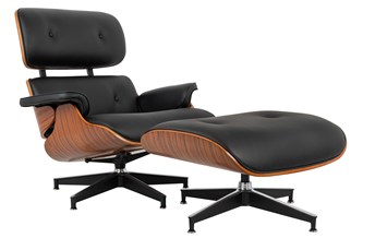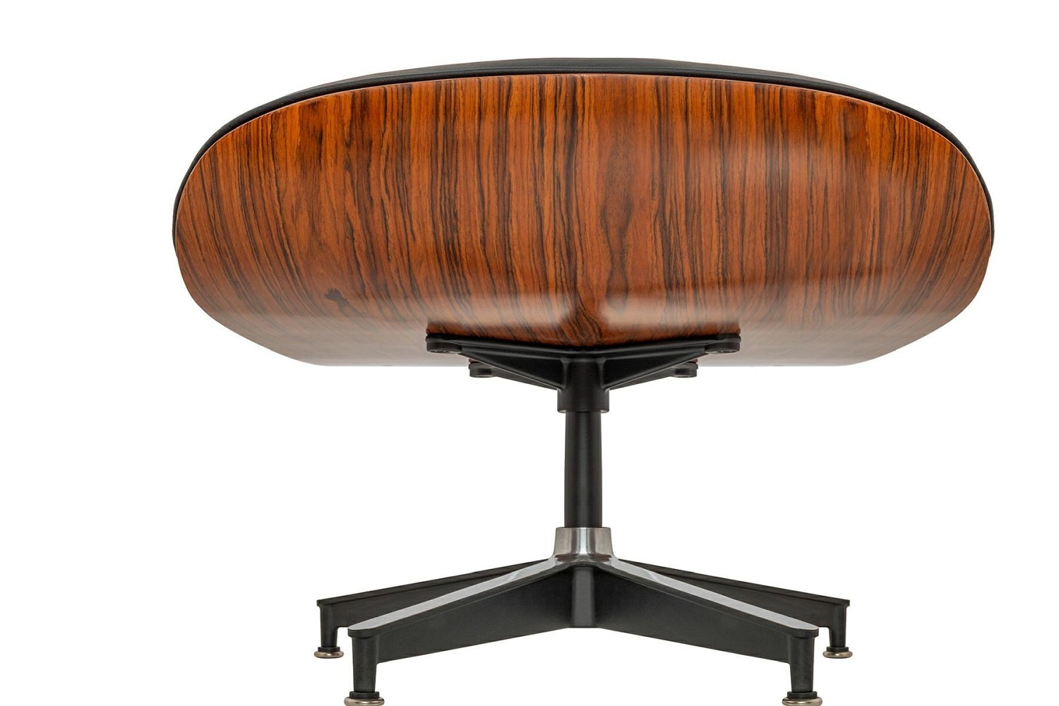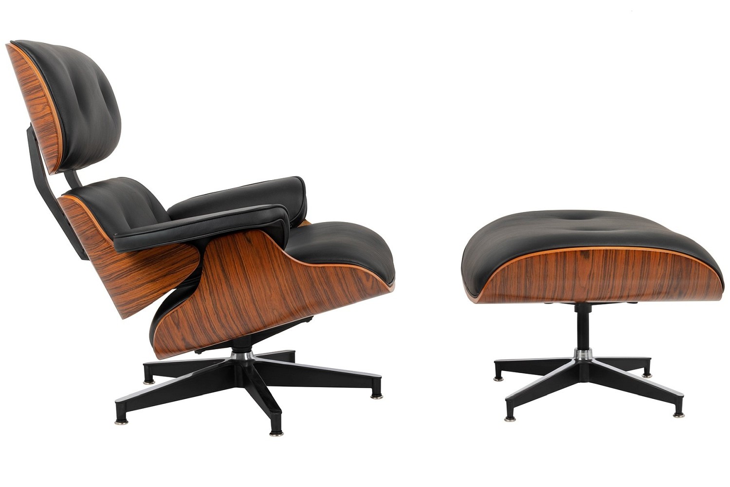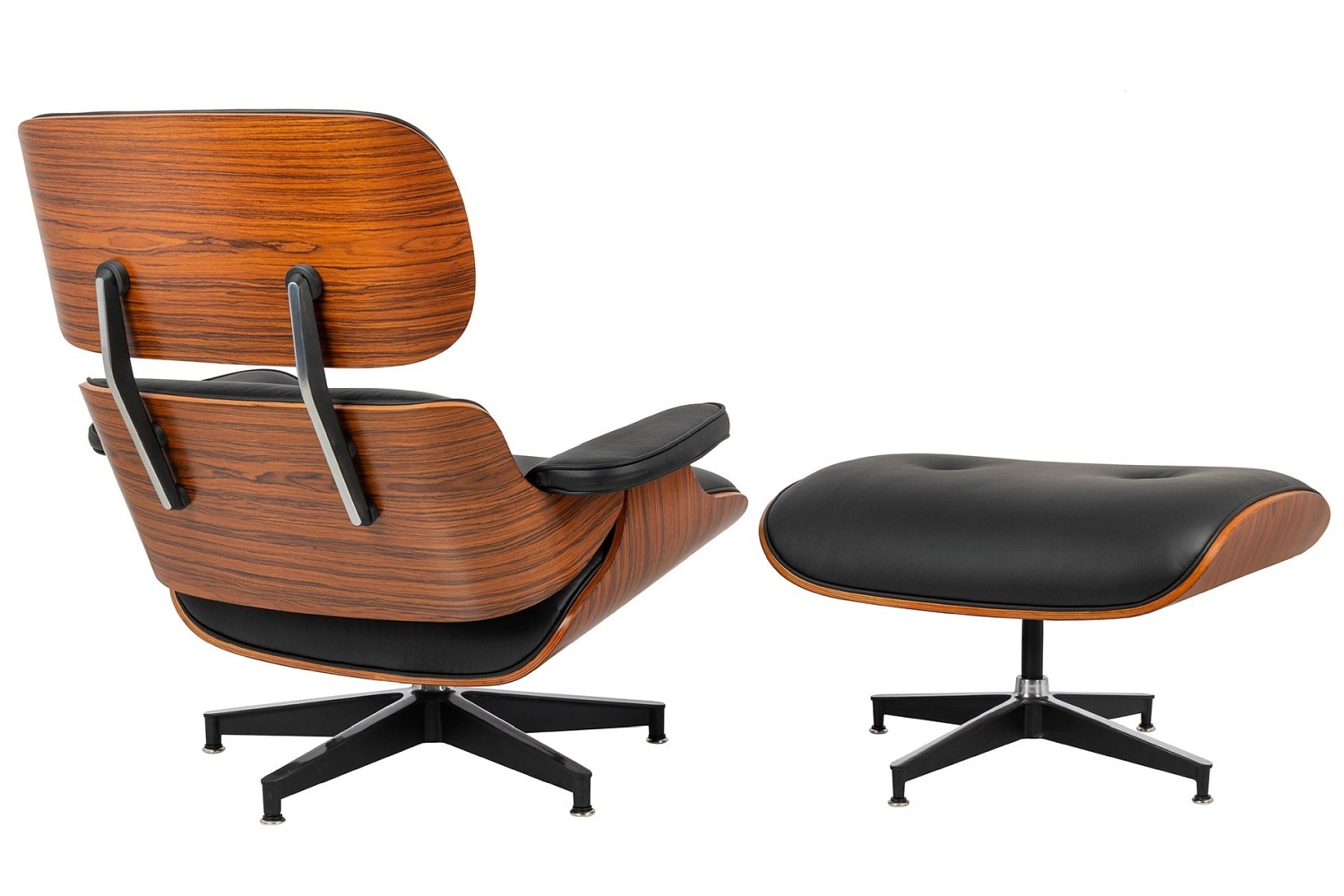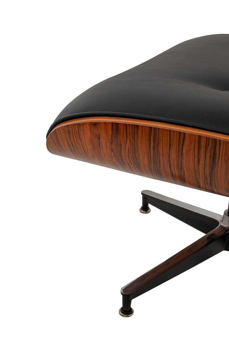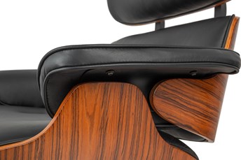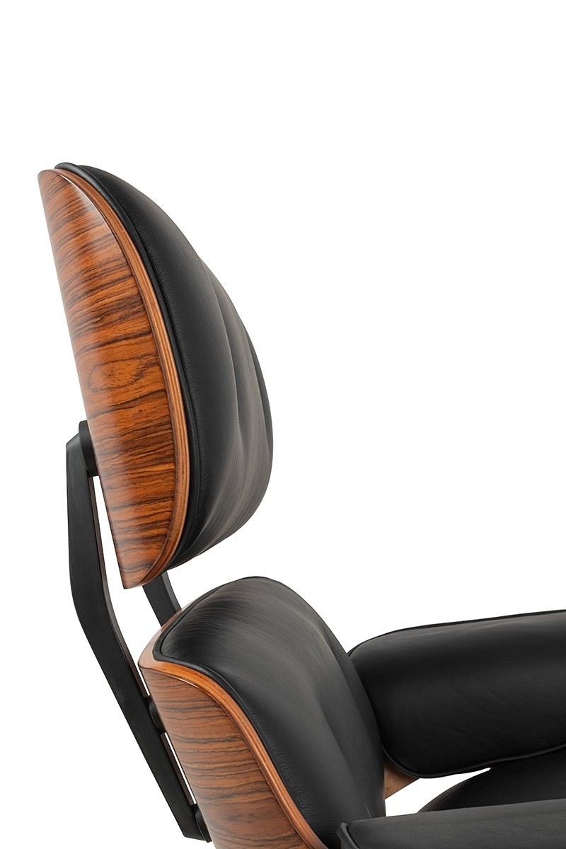 Zarówno korpus fotela jak i podnóżka został wykonany z giętej sklejki fornirowanej drewnem różanym.