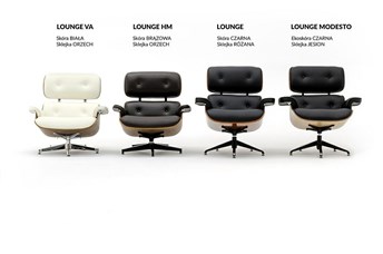 Fotel oraz podnóżek są obrotowe. Lounge z podnóżkiem doskonale sprawdzi się w salonie lub gabinecie.