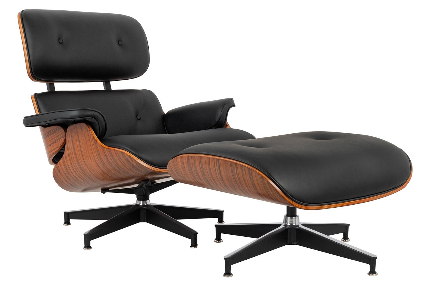 Fotel LOUNGE HM PREMIUM SZEROKI czarny z podnóżkiem z różanym drewnem.