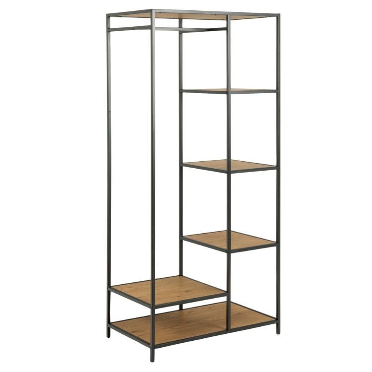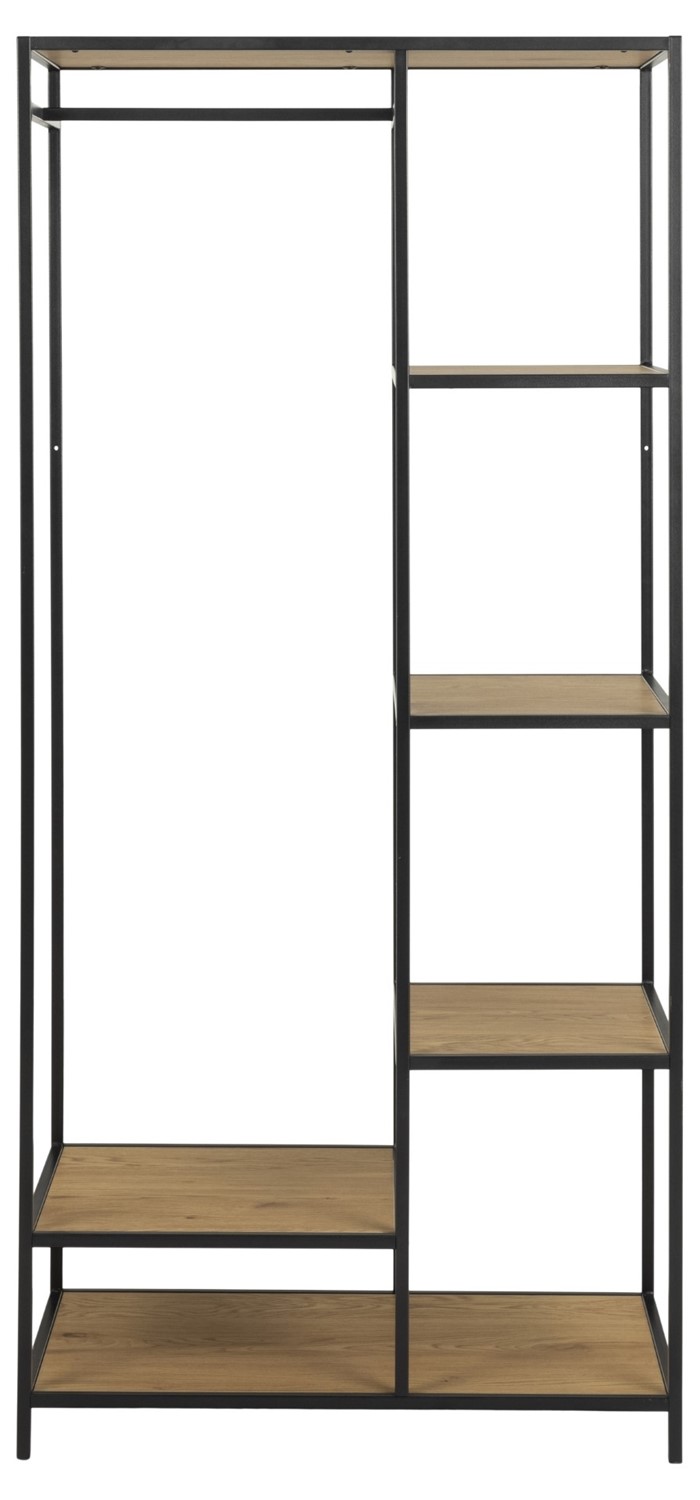 Garderoba Seaford to elegancka i klasyczna meblościanka, idealna do salonu, sypialni lub przedpokoju. Wykonana została z litego drewna dębowego w kolorze czarnym, co nadaje jej stylowy i nowoczesny wygląd. Meblościanka składa się z szafek, szuflad i półek, co zapewnia dużo miejsca do przechowywania ubrań, butów i innych przedmiotów. Dzięki wysokiej jakości wykonania, garderoba Seaford będzie służyć przez wiele lat, dodając elegancji i stylu do każdego pomieszczenia.