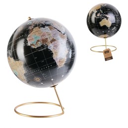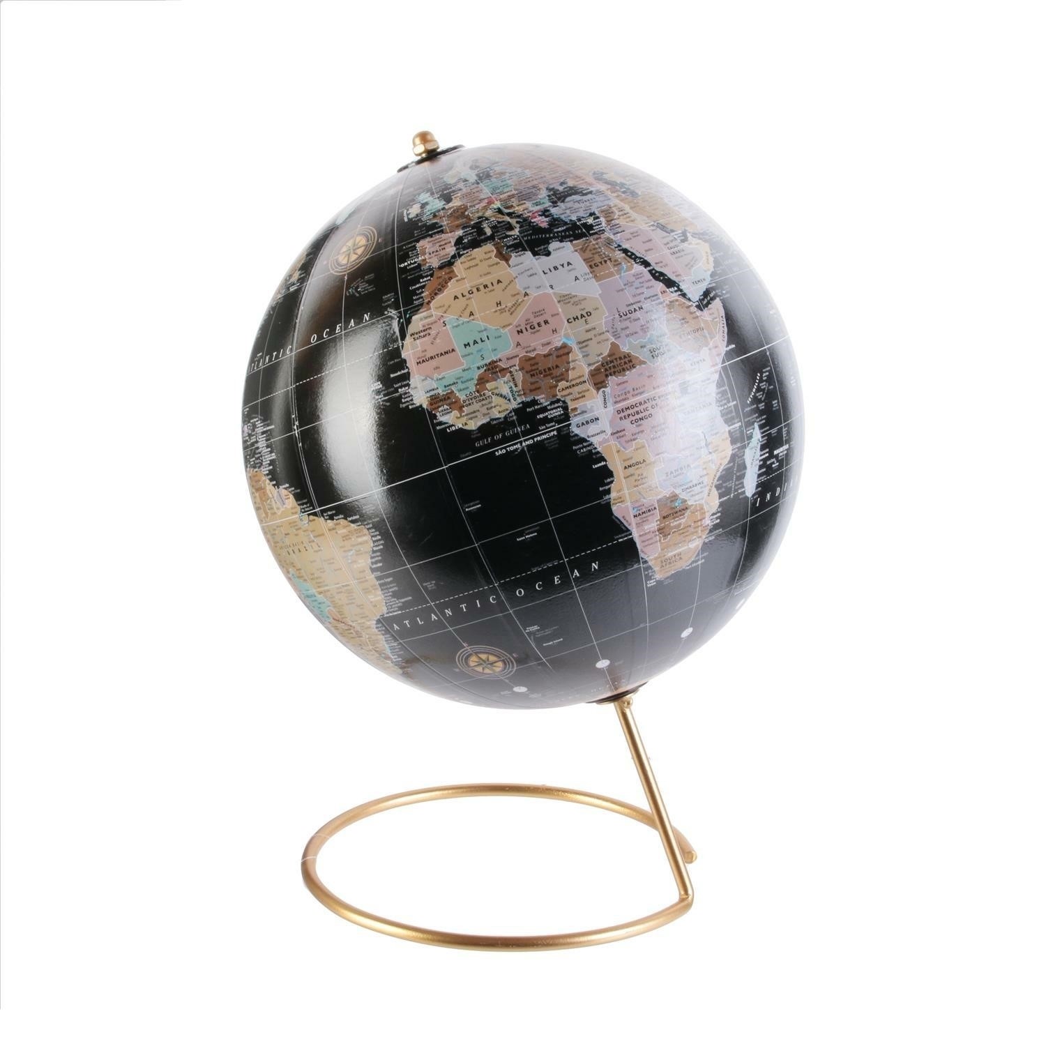 Globus dekoracyjny w kolorze czarnym to elegancki i stylowy dodatek do każdego wnętrza. Ten piękny globus świetnie sprawdzi się zarówno w salonie, biurze, jak i gabinecie. Stanowi nie tylko ozdobę, ale także ciekawy element edukacyjny, dzięki któremu można zapoznać się z geografią świata.Globus dekoracyjny w kolorze czarnym jest doskonałym prezentem dla pasjonatów podróży, geografii i sztuki. Jego designerski wygląd sprawia, że będzie piękną ozdobą każdego pomieszczenia. Dodatkowo, może pełnić funkcję lampy nocnej lub elementu rozbudowanego systemu oświetlenia.Globus dekoracyjny w kolorze czarnym to nie tylko piękna ozdoba wnętrza, ale również praktyczny i funkcjonalny przedmiot, który zachwyci każdego miłośnika podróży i geografii.
