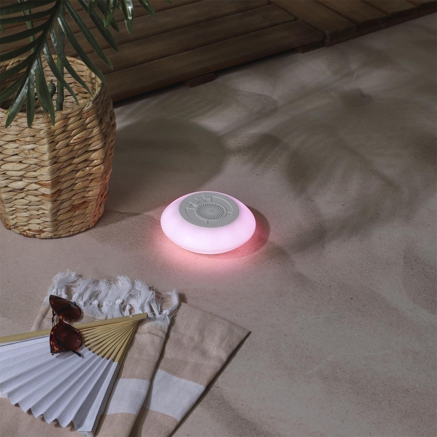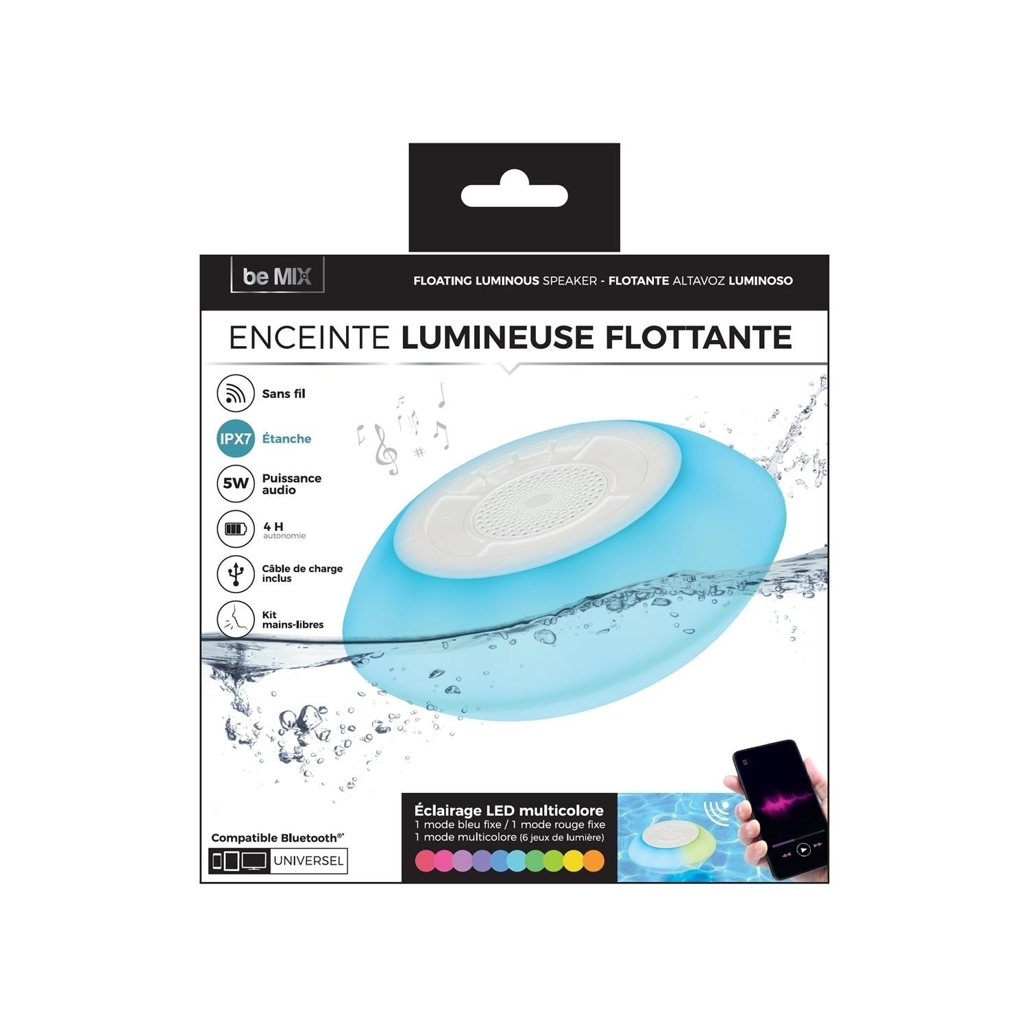 Ten przenośny głośnik to idealne rozwiązanie dla miłośników muzyki. Dzięki wodoodpornej obudowie sprawdzi się na basenie czy plaży, a wbudowane oświetlenie LED zmieniające kolory w rytm muzyki tworzy wyjątkową atmosferę.