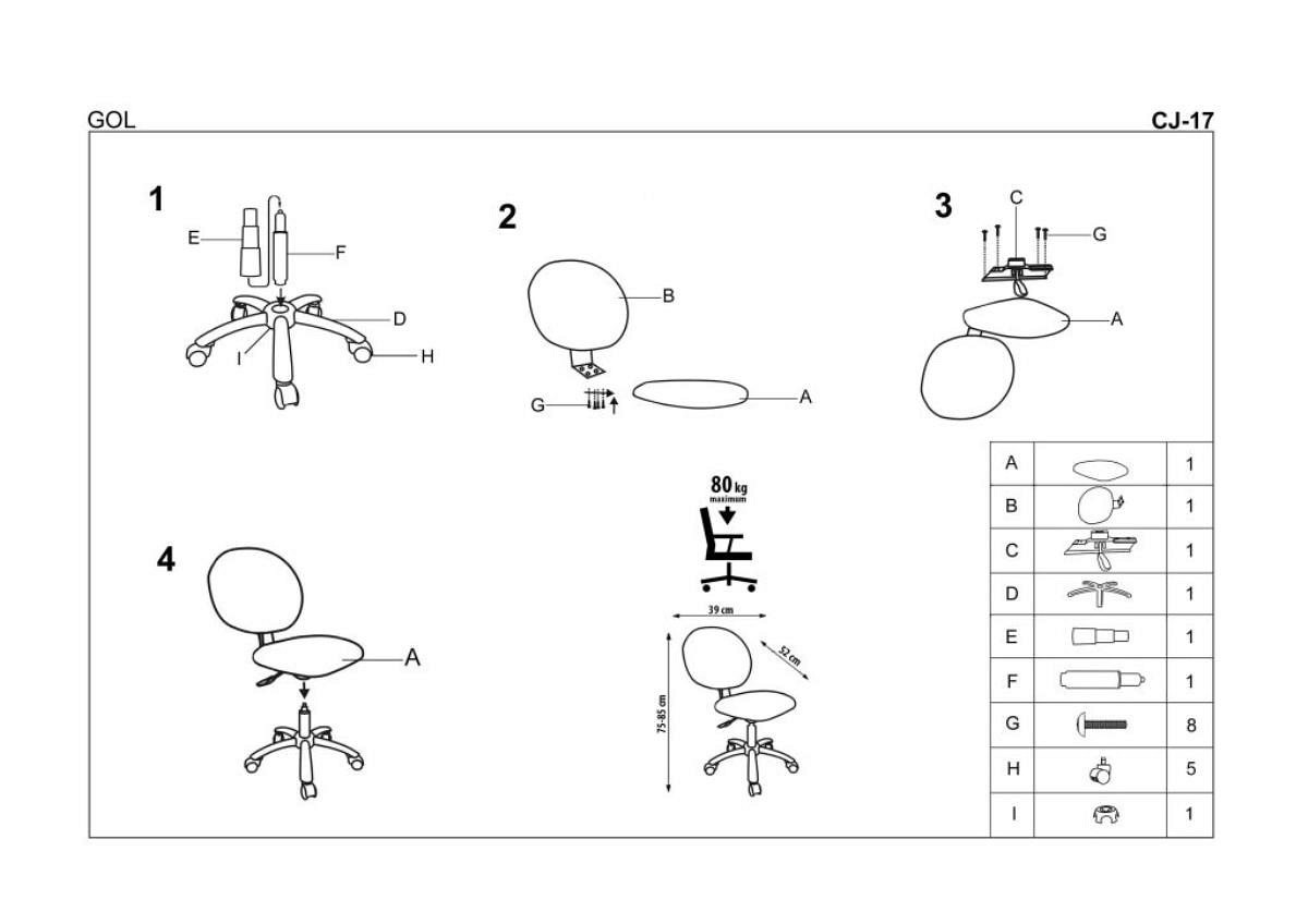 GOL to propozycja dla fana piłki nożnej. Siedzisko i oparcie są obszyte łatwą w czyszczeniu ekoskórą. Fotel posiada mechanizm podstawowy, który umożliwia dostosowanie wysokości siedziska. Fotel wyposażony został w kółka pokryte kauczukiem, dzięki czemu nie rysuje twardych powierzchni i z łatwością porusza się po każdej nawierzchni.