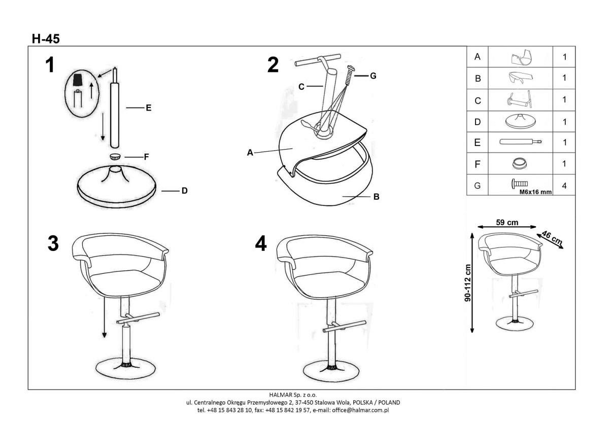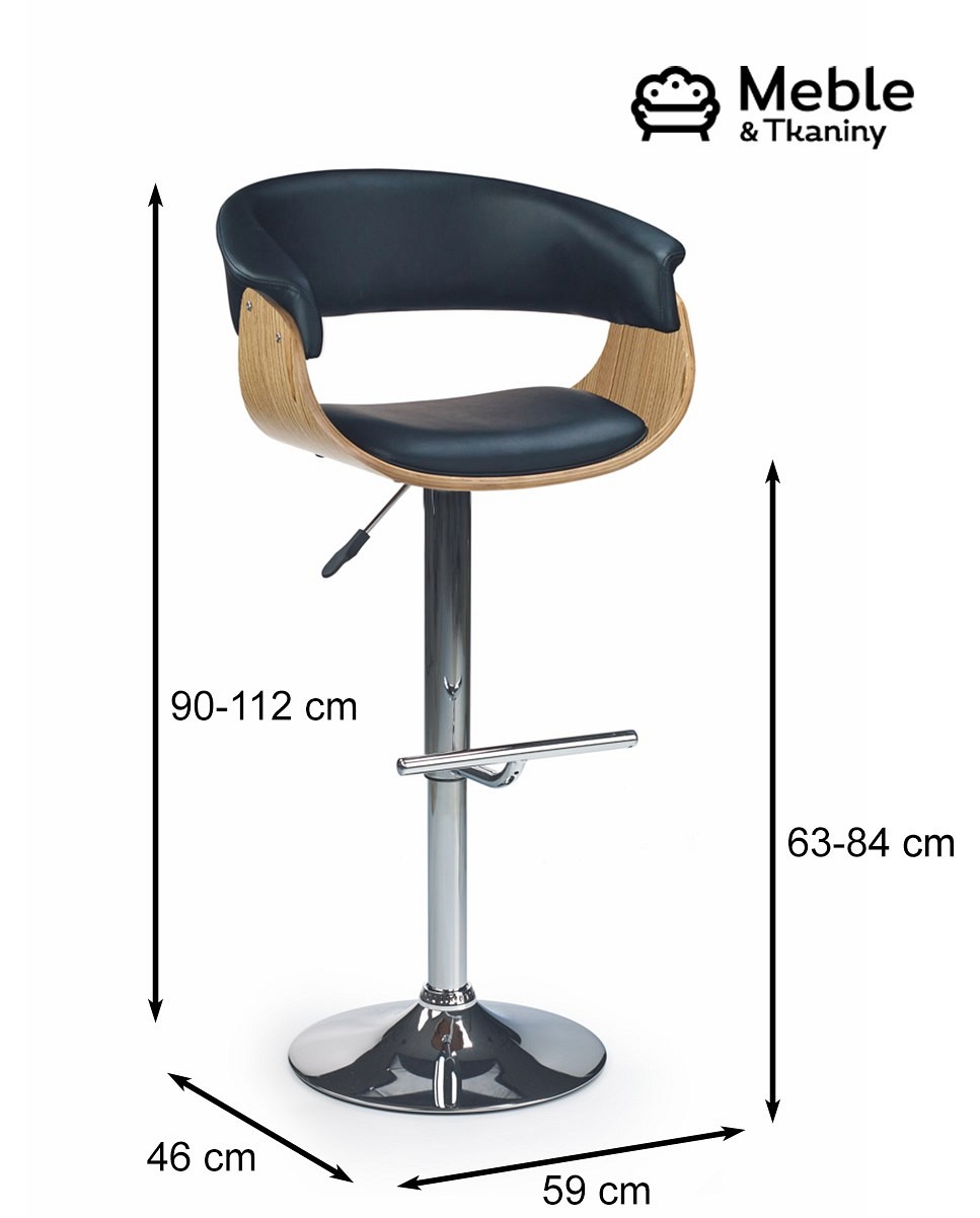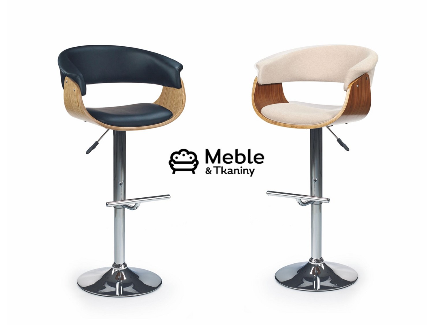 H45 to propozycja dla osób lubiących wygląd drewna. Całość podstawy tworzy pojedyncza noga ze stali chromowanej, zaś siedzisko wraz z oparciem wykonano ze sklejki giętej obszytej z wewnętrznej strony wytrzymałą ekoskórą. Wycięcie na odcinku lędźwiowym nadaje H45 dodatkowego charakteru, a regulacja wysokości podnosi jego funkcjonalność.