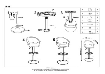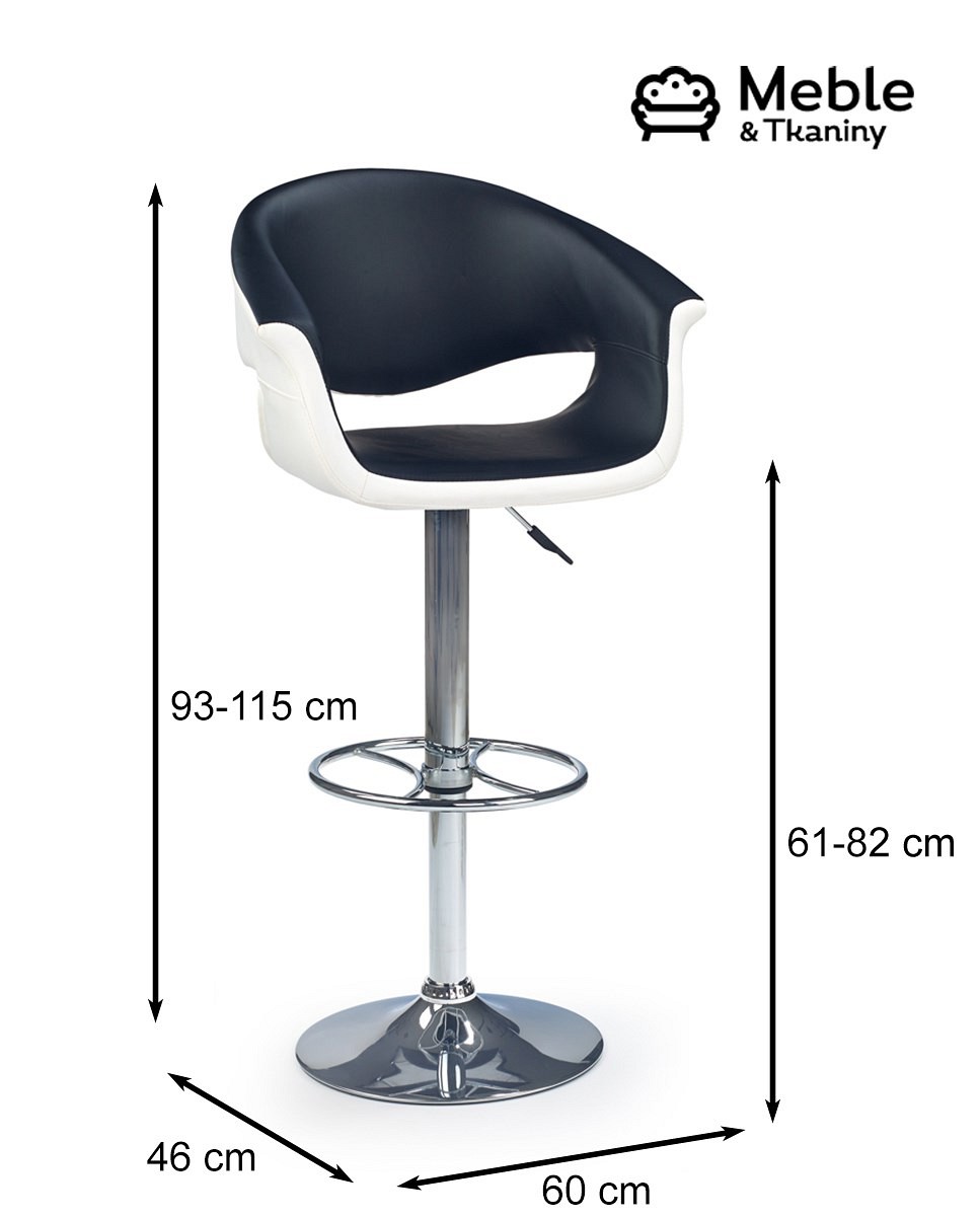 H46 to oferta dla osób nowoczesnych i eleganckich. Całość podstawy tworzy pojedyncza noga ze stali chromowanej, zaś siedzisko wraz z oparciem wykonano ze sklejki giętej obszytej z wewnętrznej strony wytrzymałą ekoskórą. Wycięcie na odcinku lędźwiowym nadaje H46 dodatkowego charakteru, a regulacja wysokości podnosi jego funkcjonalność.