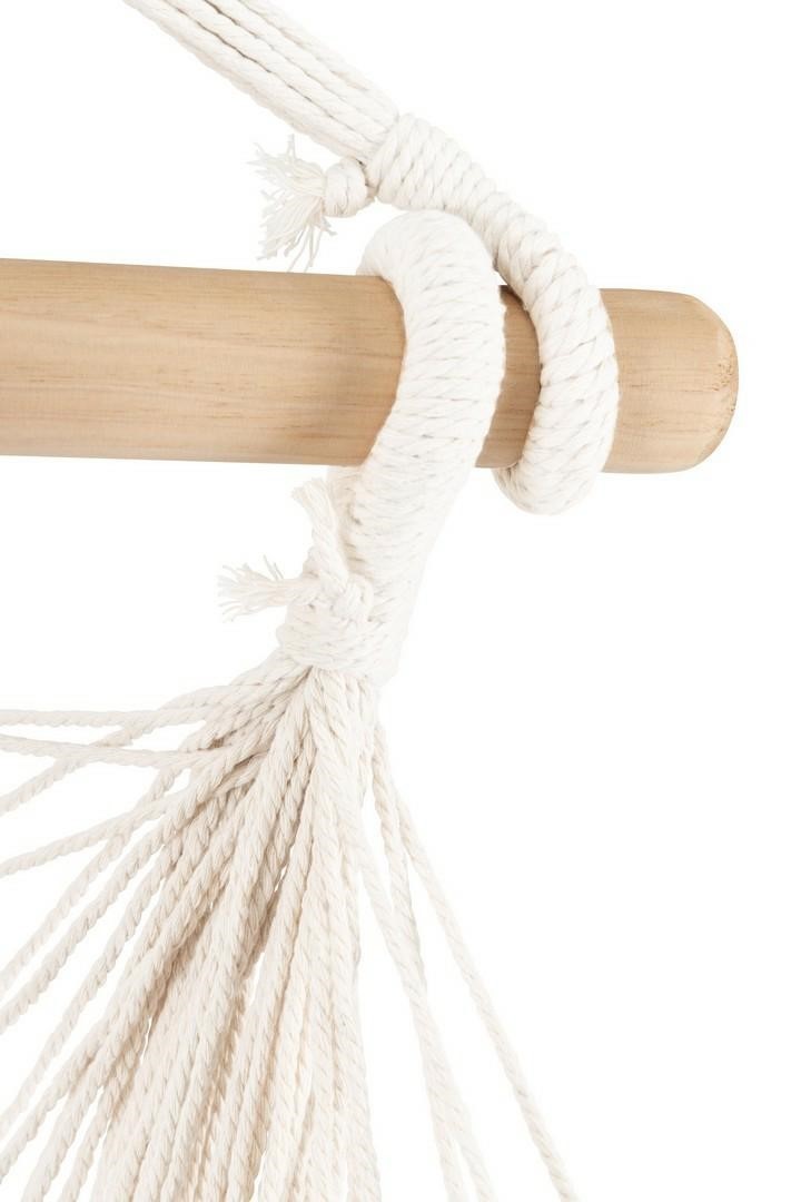 BENIDORM to klasyczny hamak wiszący dostępny w dwóch kolorach: białym i czarnym. Prosty design z dekoracyjnymi frędzlami doskonale wpisuje się w naturalne, rustykalne czy boho aranżacje ogrodu. Materiał jest miękki, ale wytrzymały, co zapewnia bezpieczne i przyjemne użytkowanie. Wystarczy kilka chwil, by stworzyć w nim strefę relaksu na świeżym powietrzu.
