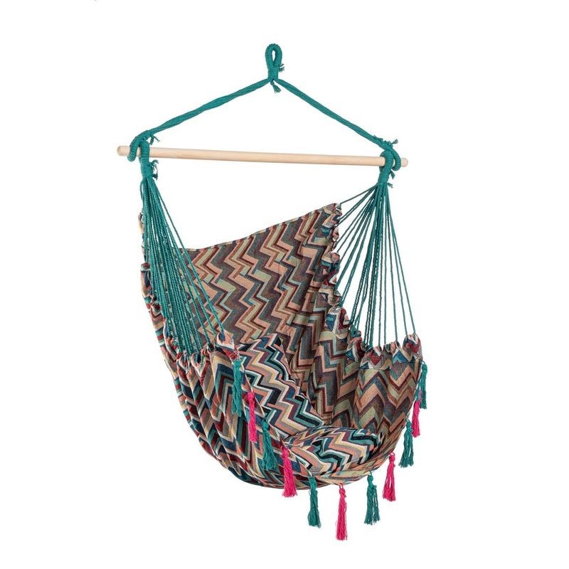 Hamak SANTANDER ZIGZAG to stylowa i funkcjonalna ozdoba ogrodu lub tarasu. Wykonany z mocnego, plecionego materiału o charakterystycznym wzorze zigzag, oferuje przytulną przestrzeń do wypoczynku. Wygodny i dekoracyjny, wpisuje się w styl boho oraz naturalne aranżacje. Łatwy do zawieszenia i przechowywania. Idealny do relaksu na świeżym powietrzu – wystarczy drzewo lub specjalny stojak.