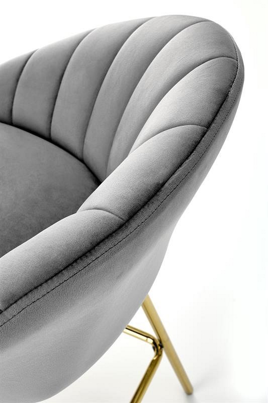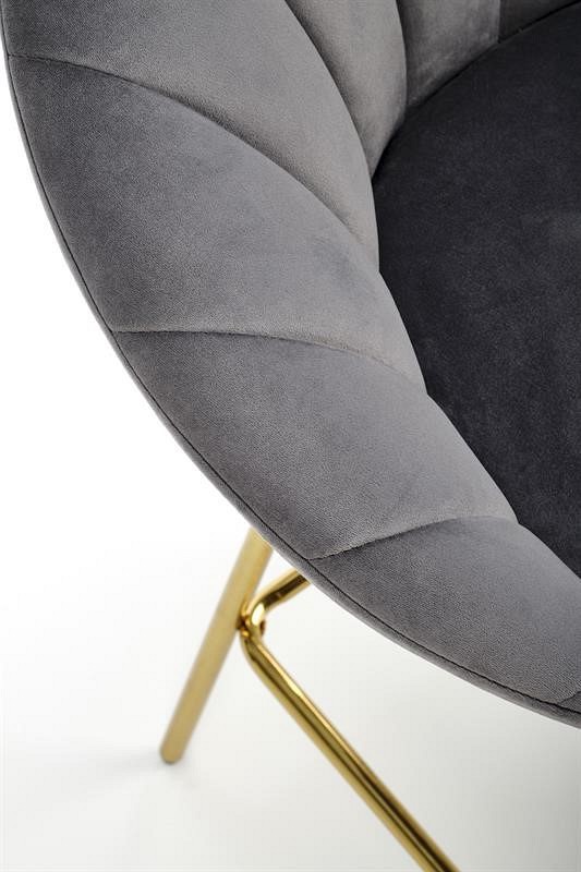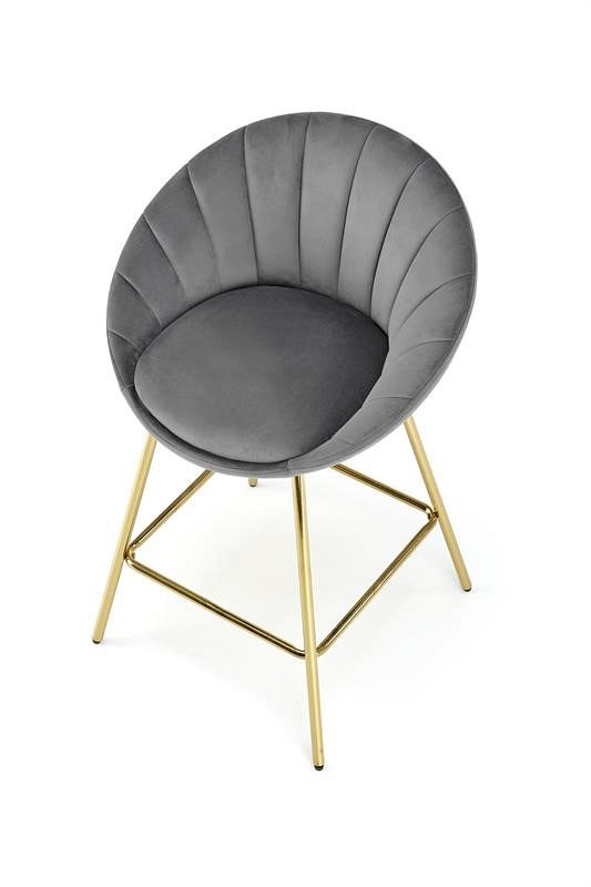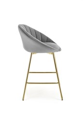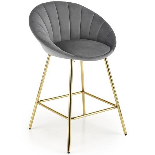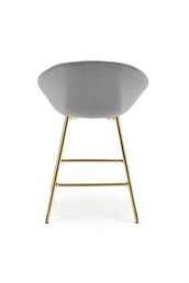 Stołek H-112 to doskonały wybór do urządzania kuchni lub baru w szykownym stylu. Jego nogi wykonane są z pozłacanej stali, co nadaje meblom eleganckiego wyglądu. Nogi połączone są ze stalowym wspornikiem, który wzmacnia konstrukcję stołka i jednocześnie zapewnia wygodne oparcie dla nóg siedzącego. Siedzisko i oparcie hokera tapicerowane jest piękną aksamitną tkaniną. Takie połączenie koloru złotego i popielatego stanowi harmonijną całość, która przyciąga uwagę i nadaje wnętrzu niepowtarzalnego stylu.