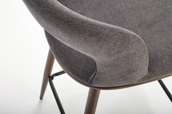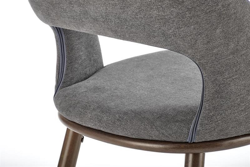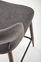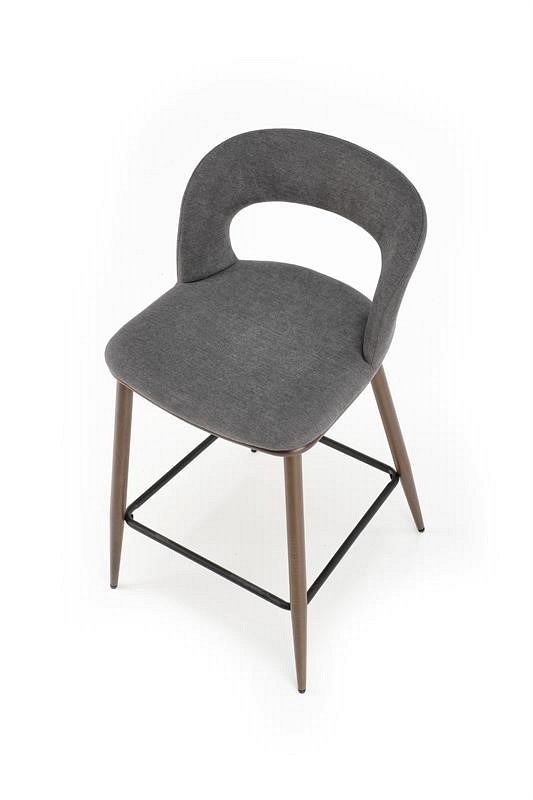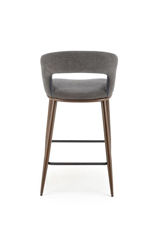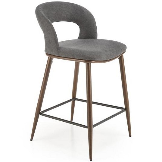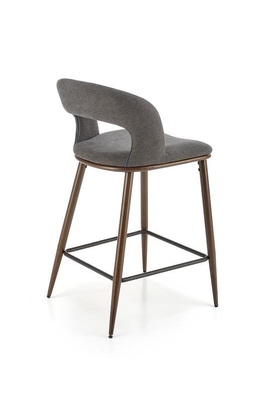 Stołek H-114 to minimalistyczny mebel, idealny dla osób lubiących proste rozwiązania. Nogi wykonane ze stali lakierowanej na kolor orzecha z wygodnym podnóżkiem. Siedzisko pokryte jest miękką tkaniną w kolorze popielatym, która nie tylko estetycznie wygląda, ale także zapewnia miękkość i wygodę. Tył hokera urozmaicony wszytym zamkiem błyskawicznym. Dzięki uniwersalnemu wyglądowi stołek barowy H-114 doskonale pasuje do wielu różnych przestrzeni mieszkalnych.