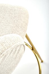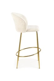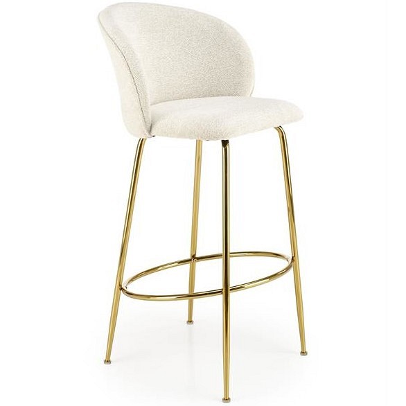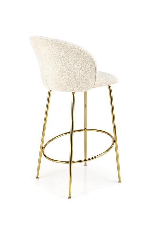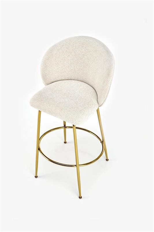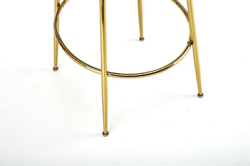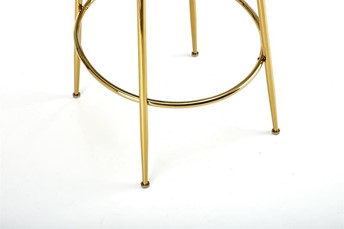 Hoker H-116 to nie tylko piękny element dekoracyjny w aranżacji mieszkania czy baru, ale również wygodne siedzisko. Mebel został starannie zaprojektowany, aby zapewnić radość z użytkowania. Podstawę stołka stanowią cztery nogi ze stali chromowanej w kolorze złotym, które są nie tylko stabilne, ale również estetyczne. Nogi krzesła barowego H-116 połączone są chromowanym stalowym pierścieniem, który pełni funkcję podnóżka i zapewnia dodatkowy komfort podczas długiej sesji. Wygodne siedzisko i oparcie hokera obite jest tkaniną o oryginalnej fakturze, która jest bardzo miękka i przyjemna w dotyku.
