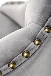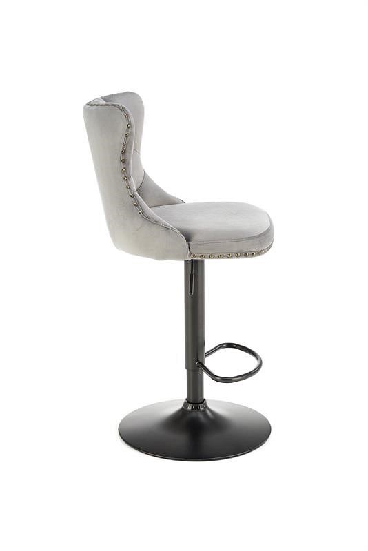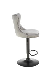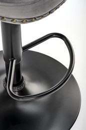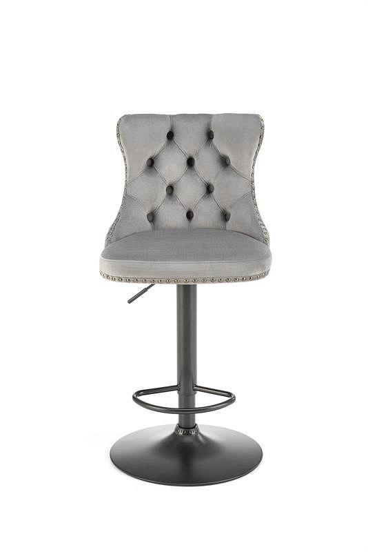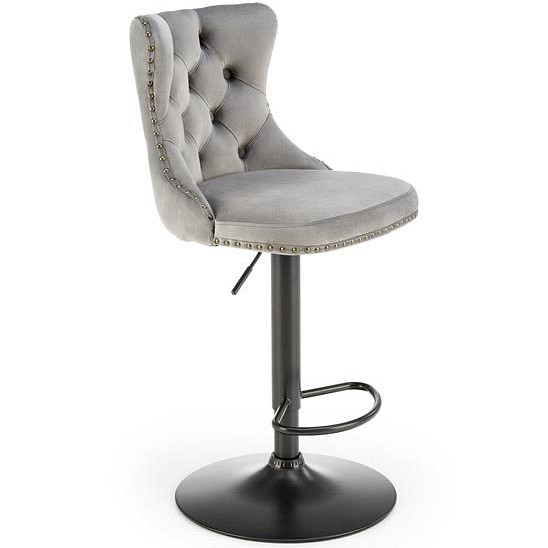 Hoker H-117 jest tapicerowany aksamitną tkaniną z wyściełanym oparciem i ozdobnymi nitami w kolorze antycznego złota. W ten sposób powstaje wyjątkowy mebel, który przykuwa uwagę swoim oryginalnym designem. Aksamitna tkanina oprócz eleganckiego wyglądu jest przyjemna w dotyku i zwiększa komfort użytkowania. Mebel oparty jest na jednej nodze z czarnym podnóżkiem, co zapewnia stabilność i trwałość. Dodatkowo podnośnik gazowy na dole pozwala w łatwy sposób dopasować wysokość siedziska do indywidualnych potrzeb. Ten elegancki stołek barowy jest idealny do różnych pomieszczeń, takich jak kuchnia, jadalnia czy salon.