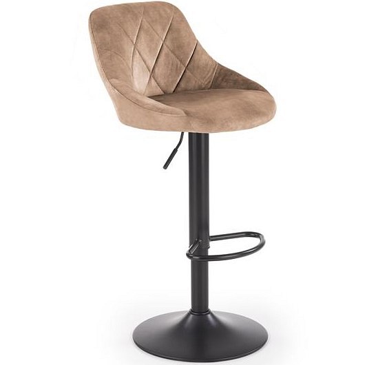 Stołek H-101 VELVET doskonale uzupełni wystrój kuchni, baru, salonu fryzjerskiego czy fryzjerskiego. Wyróżnia się przede wszystkim wygodnym tyłem oraz przeszyciami, które podkreślają urodę tkaniny. Tapicerka wykonana jest z miękkiego aksamitu w modnym beżowym kolorze. Materiał ten jest nie tylko bardzo przyjemny w dotyku, ale także zachwyca delikatną poświatą w promieniach słońca. Metalowa podstawa hokera wykonana jest ze stali malowanej proszkowo na kolor czarny, zakończona płytką i wyposażona w podnóżek. Wysokość stołka można regulować za pomocą podnośnika gazowego. Czarna, matowa podstawa stołka H-101 VELVET to nie tylko stabilne oparcie dla użytkownika, ale także atrakcyjny element dekoracyjny.