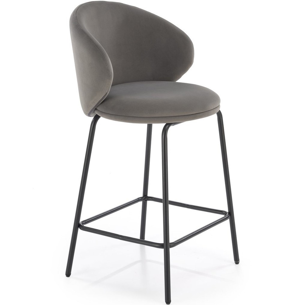 Popielaty materiał tapicerki jest łatwy do czyszczenia, co ułatwia utrzymanie hokera w doskonałym stanie przez długi czas. Czarne nogi również łatwo się czyści, co przyczynia się do zachowania eleganckiego wyglądu mebla.