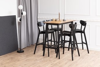 Lakierowany fornir dębowy tworzy elegancką powierzchnię siedziska, podkreślając naturalne piękno drewna. Z kolei lakierowana drewniana podstawa tworzy odważny kontrast i dodaje stołkowi wyrazistości. Wygodne siedzisko pozwala na pochylenie się w kierunku zakrzywionego oparcia, zapewniając komfort podczas długotrwałego siedzenia. Dodatkowo, podnóżek umożliwia zrelaksowanie ciała i wygodne ułożenie stóp. To idealne rozwiązanie zarówno do domowych jadalni, jak i barów czy kawiarni. Hoker Roxby nie tylko wyróżnia się stylem, ale również praktycznością. Lakierowana powierzchnia jest łatwa w pielęgnacji i wymaga minimalnej konserwacji, co ułatwia utrzymanie mebla w doskonałym stanie przez wiele lat. Wybierz Roxby, aby wprowadzić do swojego wnętrza unikalny akcent z nutą nostalgii i oryginalności.