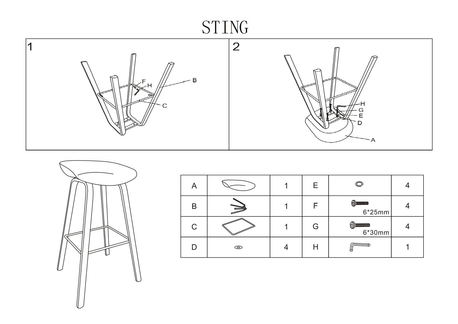 Hoker Sting to nowoczesna, skandynawska alternatywa krzeseł przeznaczonych do jadalni. Doskonale sprawdzi się przy wysokim stole lub w towarzystwie kuchennej wyspy. Jego siedzisko wykonane zostało z tworzywa PP w dwóch kolorach do wyboru: szarym i białym, natomiast stelaż wykonany jest z metalu w naturalnej okleinie dębowej, wzmocniony został połączeniem wykonanym z mocnego metalu malowanego na czarno.