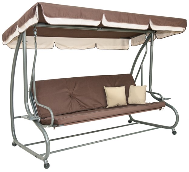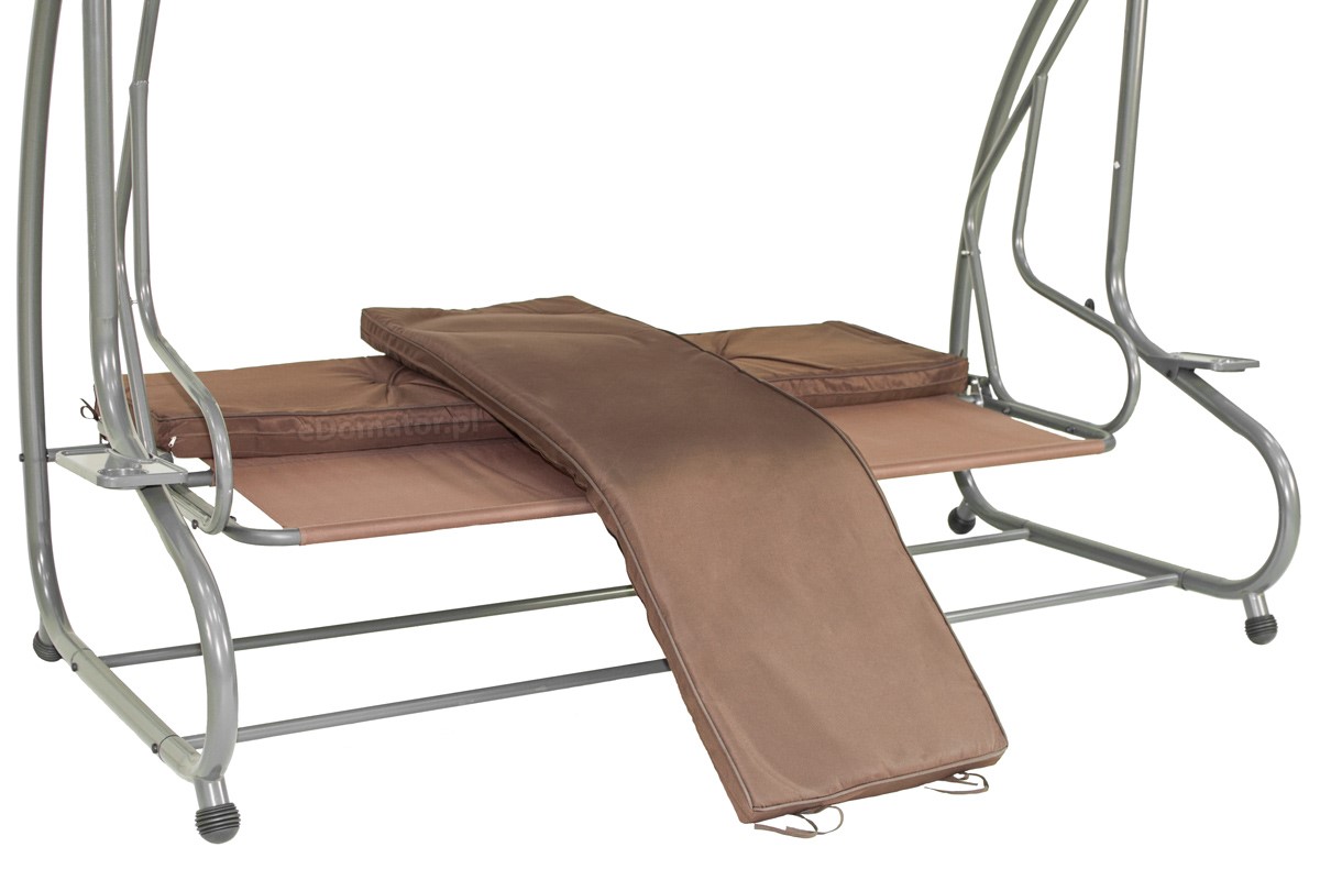 Duża huśtawka ogrodowa rozkładana Gracja, w klasycznym brązowym odcieniu, łączy funkcjonalność z eleganckim designem, stanowiąc idealne uzupełnienie każdego zewnętrznego otoczenia. Ta przestronna huśtawka oferuje nie tylko miejsce do siedzenia, ale również łatwo przekształca się w komfortowe łóżko, idealne do relaksu na świeżym powietrzu.