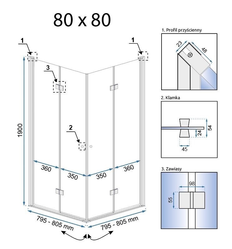 Kabina Prysznicowa FOLD N2 80x80 Chrom
