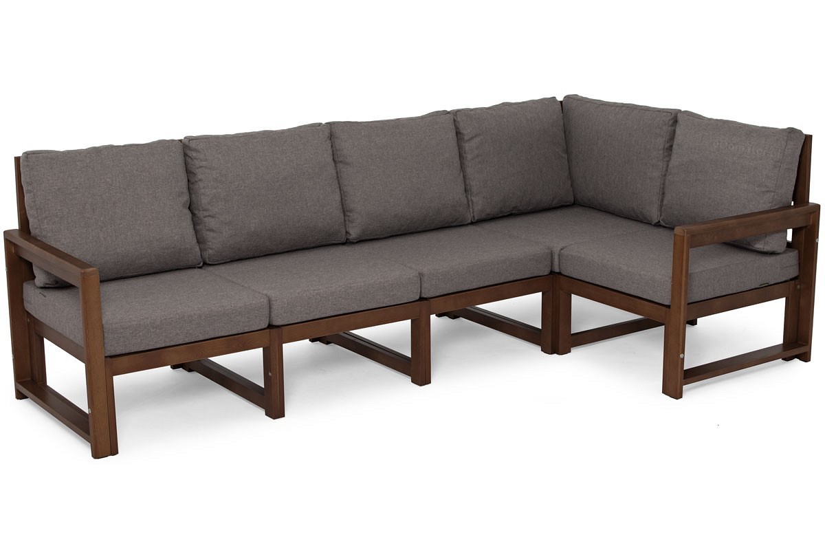 Minimalistyczny narożnik ogrodowy został zaprojektowany i wykonany w Polsce z najwyższej jakości materiałów. Meble ogrodowe z serii MALTA charakteryzują się solidnym wykonaniem i dużą wytrzymałością. Sofa w stylu skandynawskim idealnie sprawdzi się na balkonie, tarasie czy w ogrodzie. Stelaż wykonany z drewna z certyfikatem FSC, które jest impregnowane, a następnie lakierowane, odporne na warunki atmosferyczne i pleśń. Drewniane meble ogrodowe z powodzeniem można ustawić w nasłonecznionym miejscu, ponieważ nie pogarsza to ich funkcji. Corner składa się z pojedynczych modułów, dzięki czemu można go dostosować do własnych potrzeb. W zależności od konfiguracji elementy serii mogą służyć do budowy narożników prawych lub lewych. Każda część składa się z szerokiego siedziska, oparcia i środkowych nóżek. W skład zestawu wchodzą moduły, moduł narożny, dwa wsporniki boczne oraz poduszka.