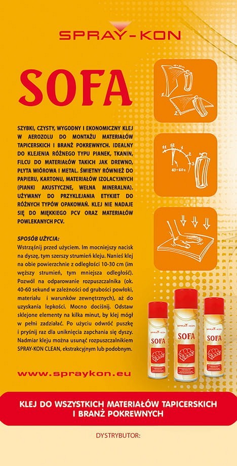 Cechy kleju SPRAY-KON SOFA: