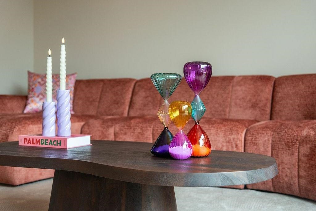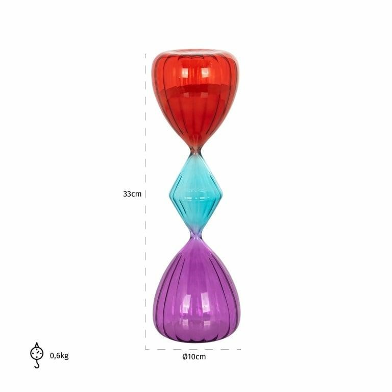 Klepsydra Jalina to wyjątkowa dekoracja, która łączy funkcjonalność z estetyką. Wykonana z doskonałej jakości szkła, wypełniona subtelnym piaskiem, nie tylko pełni rolę praktycznego czasomierza, ale również stanowi elegancki akcent, który przyciąga wzrok. Intensywne kolory: głęboka czerwień, jasny błękit oraz wyrazisty fiolet, nadają jej niepowtarzalny wygląd i wprowadzają do wnętrza filozoficzny, refleksyjny charakter. Jalina będzie doskonałym dodatkiem do salonu, gabinetu czy półki z książkami, wnosząc energię, kreatywność i harmonię do przestrzeni.