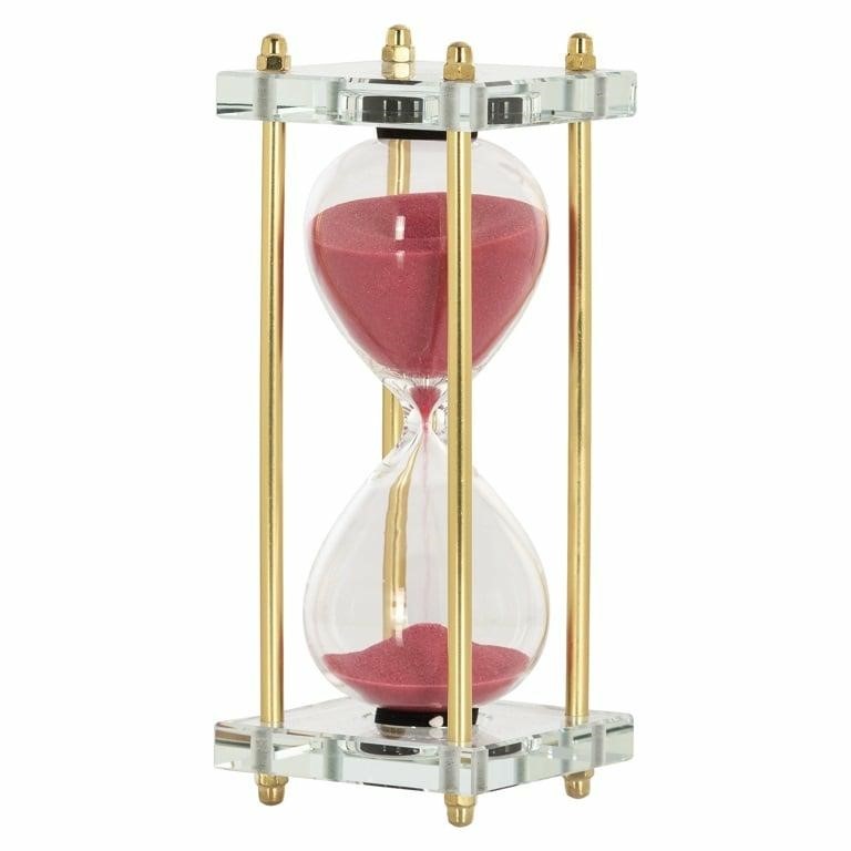 Klepsydra Ziva to elegancka dekoracja, która łączy prostotę z wyrafinowanym stylem. Jej przezroczyste szkło umożliwia podziwianie subtelnego przepływu czerwonego piasku, który wprowadza do przestrzeni wyjątkowy akcent kolorystyczny. Solidna konstrukcja z metalowymi elementami w złotym odcieniu dodaje całości luksusowego charakteru, doskonale komponując się z nowoczesnymi i klasycznymi wnętrzami. Ziva to nie tylko funkcjonalny czasomierz, ale także efektowna ozdoba, która przyciąga wzrok i dodaje elegancji każdemu pomieszczeniu.