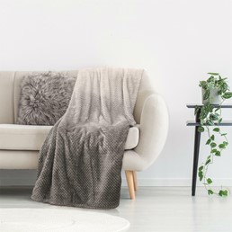 Koc pledowy w kolorze szarym o wymiarach 150x200cm. Można go wykorzystać do przykrycia się podczas chłodnych wieczorów i dodania ciepła oraz wygody w domowym zaciszu. Idealny do użytku na sofie, fotelu lub łóżku. Może również pełnić funkcję dekoracyjną, dodając wnętrzu elegancji i stylu. Wysoka jakość materiału gwarantuje trwałość i przyjemne użytkowanie. Dodatek miodu sprawia, że koc ma delikatnie słodki zapach.