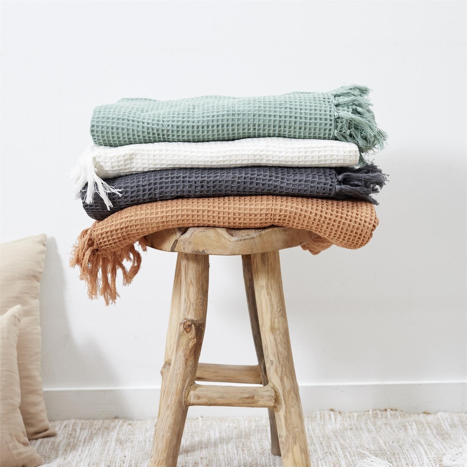Koc Waffle wykonany jest z lekkiej i miękkiej tkaniny o charakterystycznej waflowej strukturze. Dostępny w kilku modnych kolorach, idealnie sprawdza się jako narzuta na łóżko lub koc do otulenia się podczas chłodniejszych wieczorów. Wymiary: 150x200 cm.