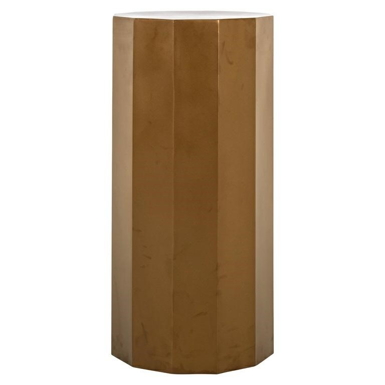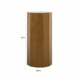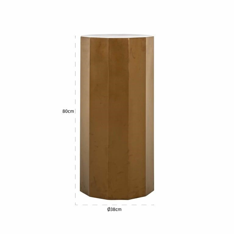 KILPIN to model, który może pełnić funkcję zarówno dekoracyjnej kolumny, jak i małego stolika. Metaliczna powierzchnia w odcieniu szczotkowanego złota przyciąga spojrzenia i dodaje wnętrzu luksusowego wykończenia. Świetnie prezentuje się solo lub jako baza pod wazony czy rzeźby.