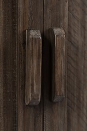 Komoda w stylu rustykalnym zachwyca unikalnym urokiem, będąc wykonaną z recyklingowanego drewna sosnowego. To niezwykłe połączenie tradycji i ekologii nadaje meblowi wyjątkowego charakteru. Przesuwne drzwi typu Barn Doors dodają mu nie tylko funkcjonalności, ale również wyjątkowego uroku, umożliwiając swobodny dostęp do przechowywanej zawartości. Ta komoda nie tylko pełni praktyczną rolę w przechowywaniu, ale również staje się niezaprzeczalnym elementem dekoracyjnym, dodając wnętrzu ciepła, charakteru i autentyczności.