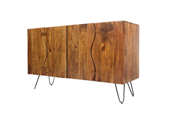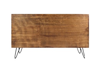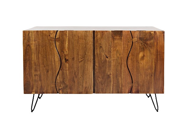 Komoda drewniana czterodrzwiowa w kolorze orzechowym na żelaznych nóżkach