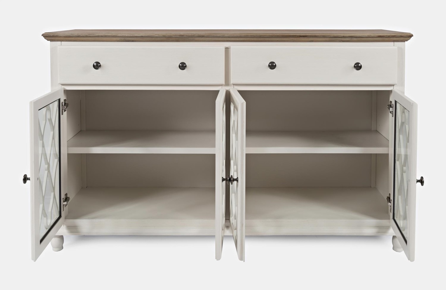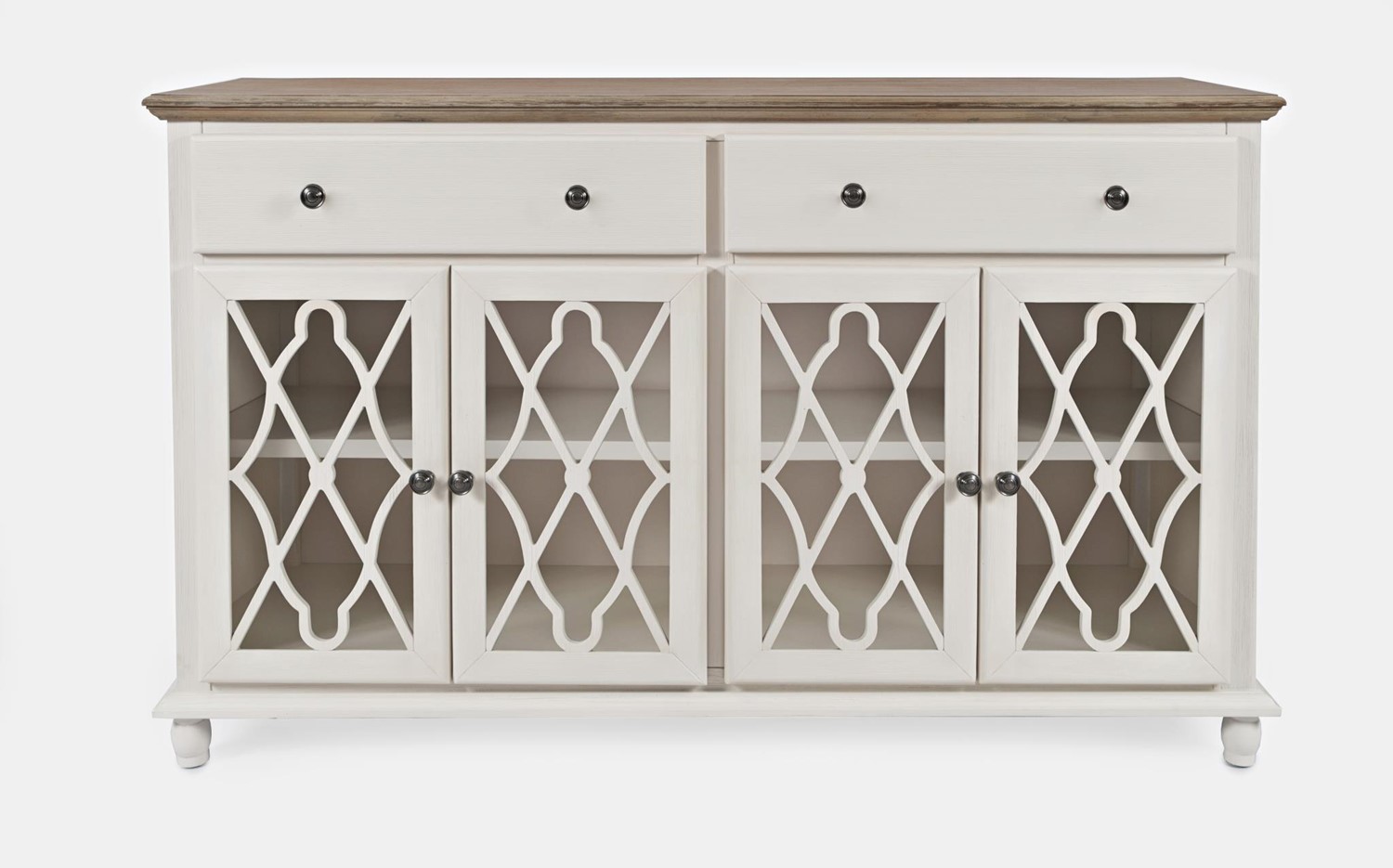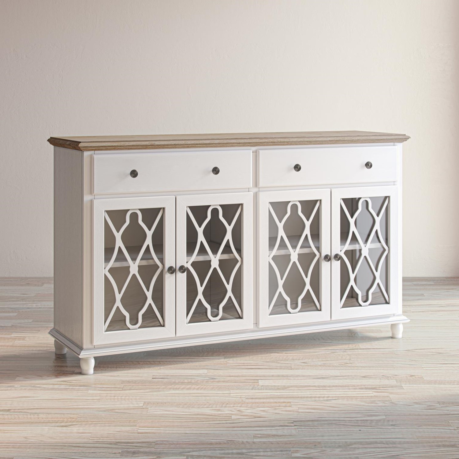 Ta urocza komoda jest nie tylko praktycznym rozwiązaniem do przechowywania, ale także estetycznym świadectwem elegancji i stylu w Twoim wnętrzu. Jej wykonanie z drewna akacji i MDF-u gwarantuje solidność oraz trwałość, a jednocześnie tworzy harmonijną bazę dla wyjątkowego designu. Dwie szuflady i dwie półki pozwalają na praktyczne uporządkowanie przestrzeni. To idealne miejsce na przechowywanie drobiazgów, dokumentów czy dekoracyjnych przedmiotów. Przeszklone ażurowe drzwi dodają meblowi lekkości, umożliwiając subtelne odsłonięcie zawartości.