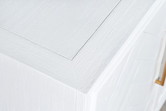 Elegancka biała komoda to kwintesencja stylu i uroku, która wniesie do Twojego wnętrza atmosferę wyjątkowej elegancji. Wykonana z drewna akacji, jej delikatny kolor biały nadaje pomieszczeniu lekkości i świeżości, tworząc jednocześnie tło dla wyjątkowych detali. Dwoje drzwiczek z intarsją to nie tylko praktyczne rozwiązanie, ale także ozdoba, która przyciąga wzrok. Intarsja dodaje komodzie szlachetności, tworząc subtelny wzór, który nadaje meblowi niepowtarzalnego charakteru. Dwie półki wewnątrz komody zapewniają mnóstwo przestrzeni do przechowywania i eksponowania różnorodnych przedmiotów. Metalowe uchwyty w kolorze złotym dodają elegancji i kontrastują z białym kolorem, tworząc wyrafinowany akcent.