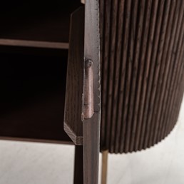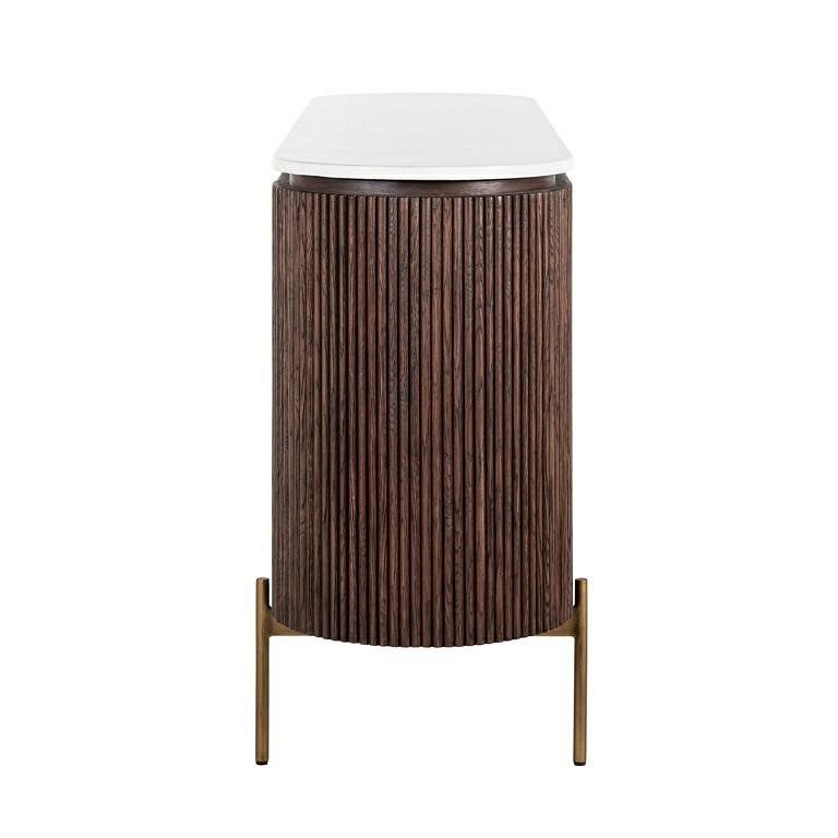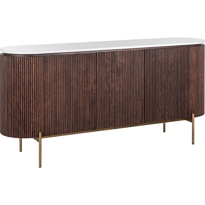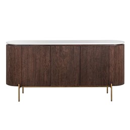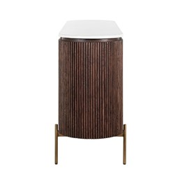 Richmond Barkley komoda to piękna, wielofunkcyjna szafka. Blat stworzony został na wzór modnego marmuru. Atutu dodaje również piękne wykończenie z drewna dębowego oraz mosiężna, szykowna podstawa. Komoda posiada 3 otwierane drzwi, z dwiema wbudowanymi półkami. Jest bardzo praktycznym meblem, w którym schowasz dużo swoich ulubionych rzeczy.