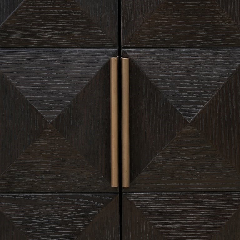 Komoda Claremont III to esencja wyrafinowanego designu i nowoczesnej elegancji. Połączenie ciemnobrązowego dębu z powierzchniami z trawertynu tworzy harmonijny i wyjątkowy efekt wizualny, a skomplikowany wzór „siatki piramidalnej” nadaje artystycznego wyrazu. Dzięki zastosowaniu najwyższej jakości materiałów, komoda zachwyca trwałością i stylem, wpisując się w trendy współczesnego wzornictwa. Idealny wybór dla tych, którzy cenią piękno i funkcjonalność w swoim wnętrzu.