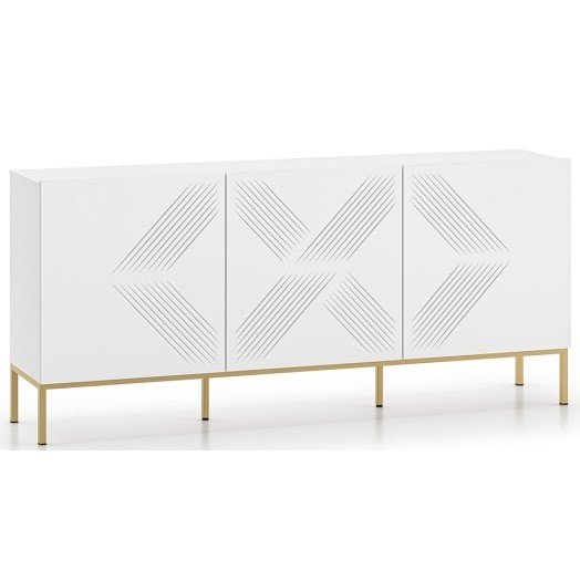 Komoda Clearing 02 z podstawą w złotym kolorze to elegancki akcent w każdym wnętrzu. Połączenie alpejskiej bieli ze złotem nadaje jej wyjątkowy charakter, a system cichego domyku ułatwia codzienne użytkowanie. Wykonana z trwałej płyty laminowanej, jest odporną i stylową propozycją do salonu lub sypialni.