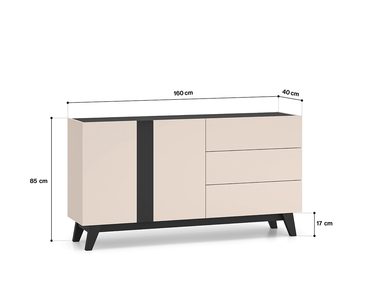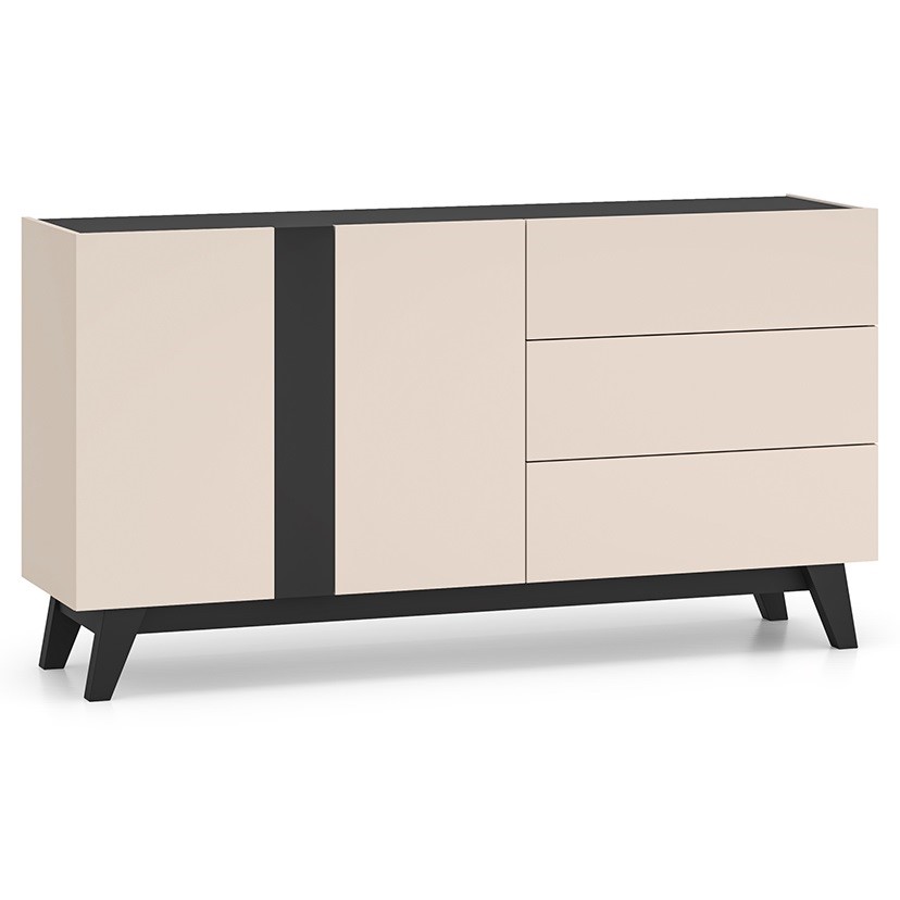 Komoda Freshion 03 to funkcjonalny mebel o wyrafinowanym wyglądzie. Trzy pojemne szuflady oferują dużo miejsca do przechowywania, a kontrastujące dekory w kaszmirze i czerni dodają elegancji.