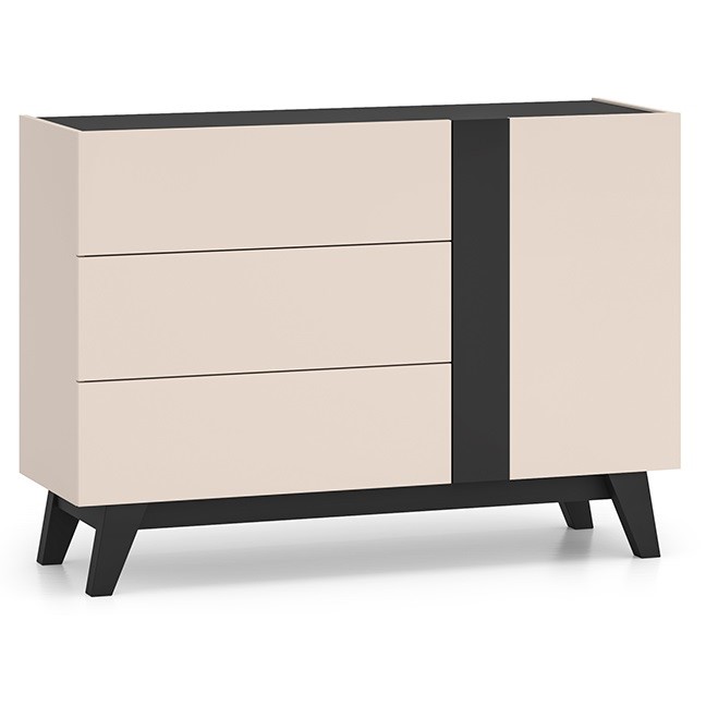 Komoda Freshion 04 to praktyczny mebel, który sprawdzi się w różnych pomieszczeniach. Trzy szuflady i dwie szafki oferują zróżnicowane miejsce do przechowywania, a nowoczesne wykończenie bez uchwytów podkreśla minimalistyczny styl.