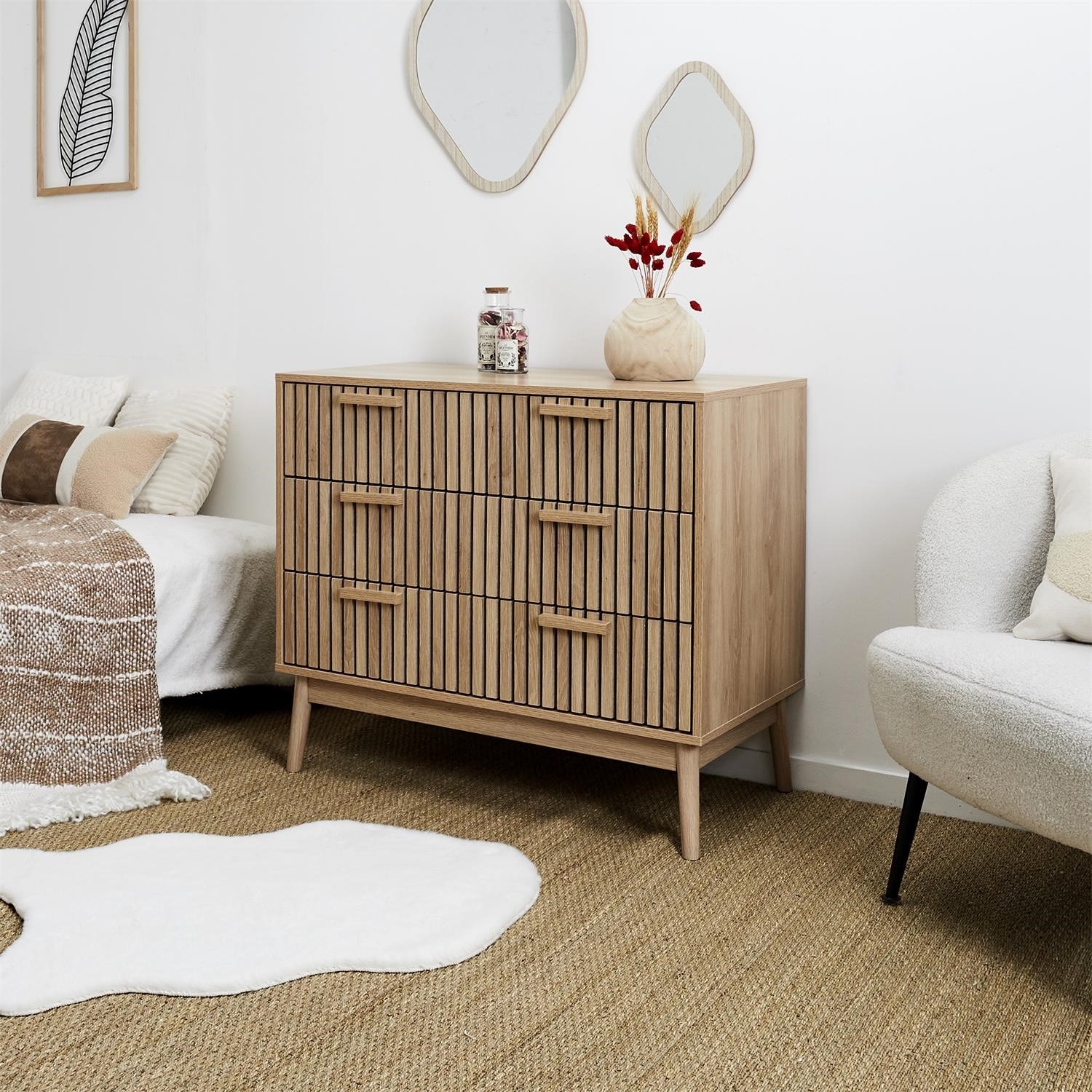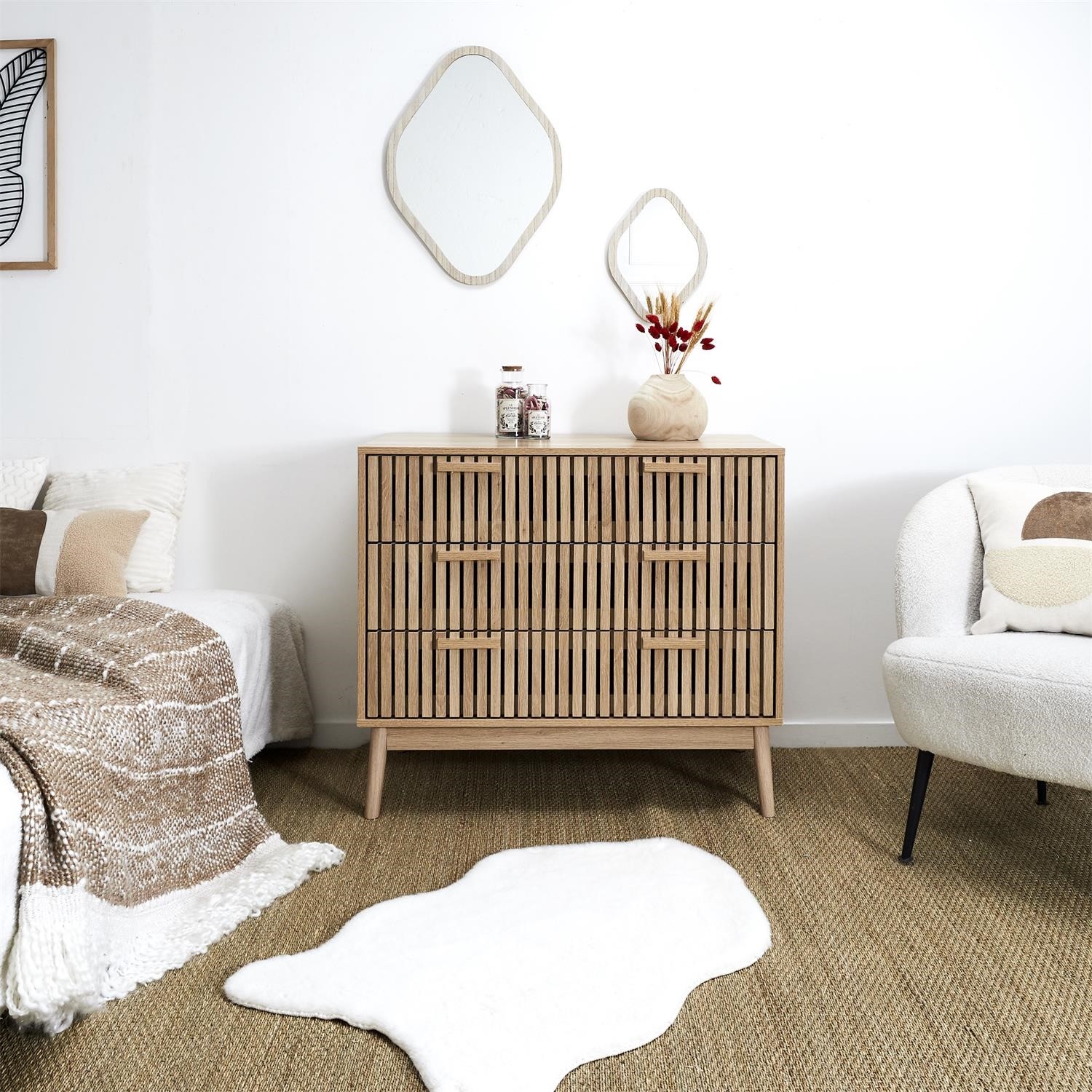 Komoda Klaus to elegancka i funkcjonalna mebel, której nowoczesny design doskonale wpisze się w wnętrza każdego domu. Ta komoda posiada trzy szuflady, co pozwoli na przechowywanie różnego rodzaju drobiazgów i akcesoriów.Wykonana jest z naturalnego drewna, co nadaje jej eleganckiego i ekskluzywnego wyglądu. Dzięki naturalnej kolorystyce komoda ta pasuje do wielu różnych stylów aranżacyjnych, od klasycznego po nowoczesny.Dzięki wysokiej jakości wykonania, komoda Klaus będzie służyć przez wiele lat, zachowując swoją funkcjonalność i estetykę. Jest to doskonała propozycja dla osób poszukujących praktycznych i stylowych mebli do swojego domu.