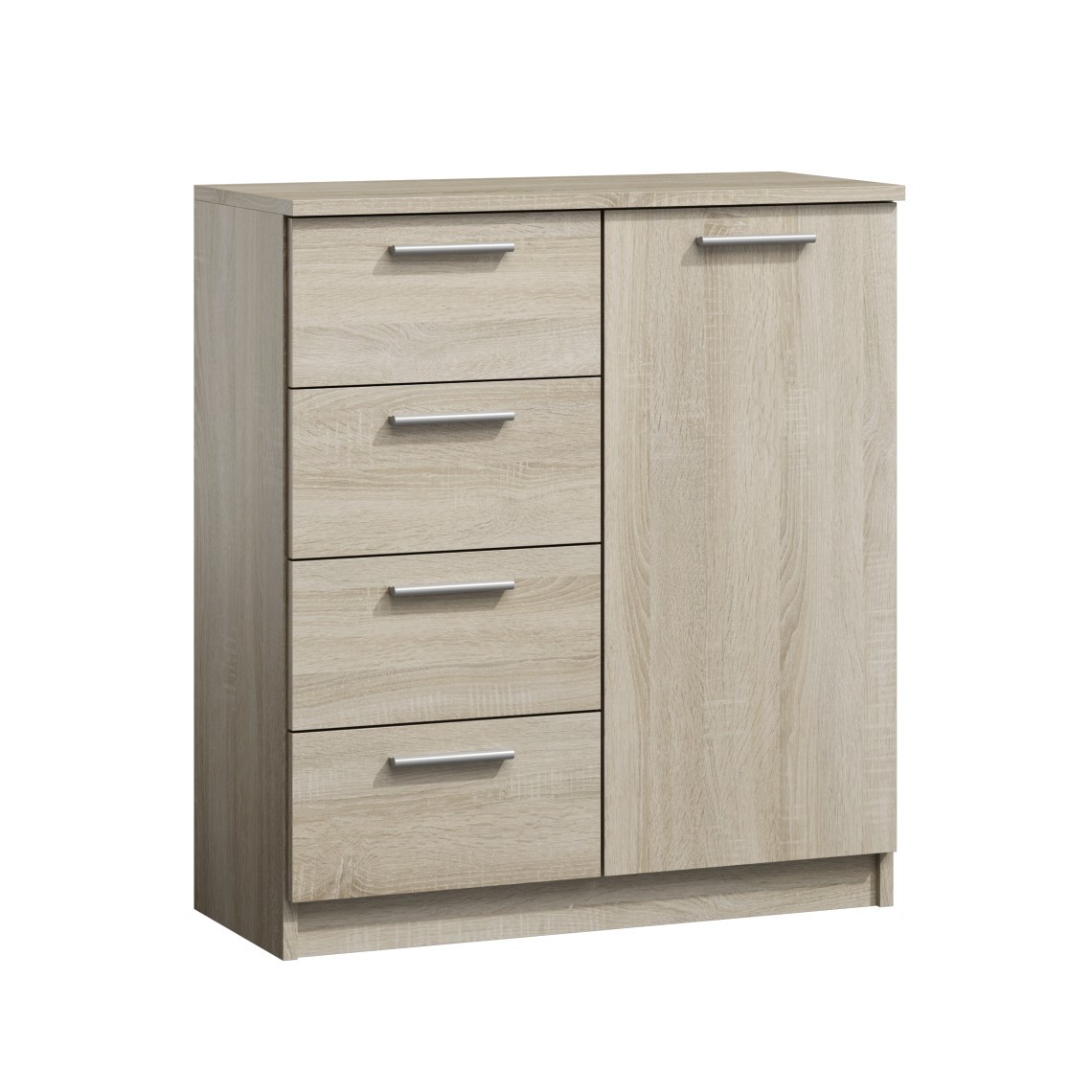 Prezentowana komoda to praktyczny i stylowy mebel, który doskonale sprawdzi się w salonie, sypialni, przedpokoju lub biurze. Solidna konstrukcja gwarantuje trwałość i stabilność użytkowania przez wiele lat. Prosty, a jednocześnie elegancki design sprawia, że komoda świetnie komponuje się z różnymi stylami aranżacyjnymi. Gładkie fronty i staranne wykończenie nadają jej nowoczesny charakter. Dzięki kompaktowym wymiarom mebel nie zajmuje dużo miejsca, a jednocześnie oferuje sporą przestrzeń do przechowywania. To idealne połączenie praktyczności, estetyki i trwałości w jednym meblu.