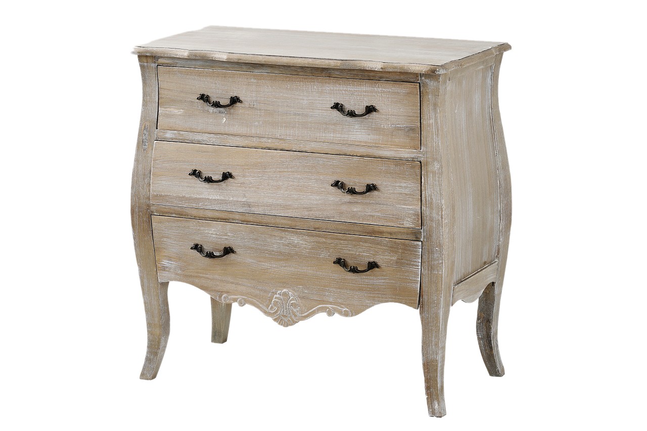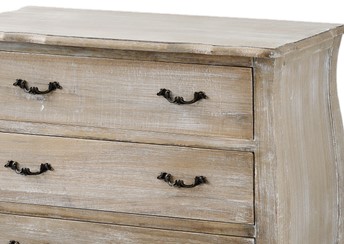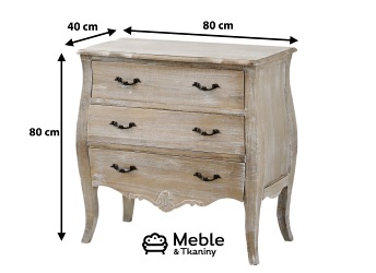 Komoda to zdecydowanie jeden z najpotrzebniejszych mebli w domu. Wersja z szufladami bardzo ułatwia utrzymanie porządku. W tym modelu mamy ich aż trzy. Mebel sprawdzi sie zarówno w salonie jak i w sypialni. Nieregularne linie mebla i metalowe okucia dodają mu uroku. Całość wykonana w stylu prowansalskim.