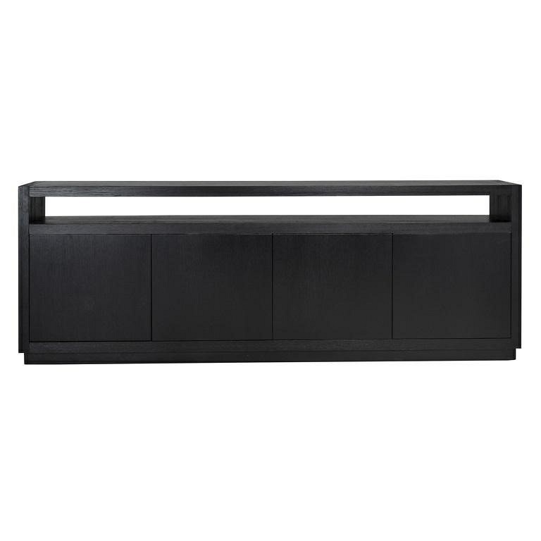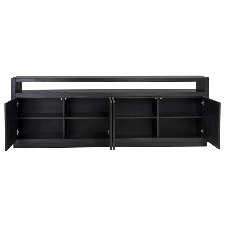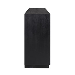 Oakura to szykowna kolekcja, wykonana z forniru dębowego barwionego na czarno, który ma piękną widoczną strukturę drewna. Ta minimalistyczna komoda ma chłodny, a zarazem szykowny charakter, który pasuje do prostych linii i pastelowych kolorów nowoczesnego wystroju. Czarna kolorystyka zapewnia kontrast w jaśniejszych pomieszczeniach oraz dobrze komponuje się z ciemniejszymi meblami. Komoda Oakura posiada 4 drzwi, za którymi kryje się 8 praktycznych półek, zapewniając przy tym mnóstwo miejsca do przechowywania.
