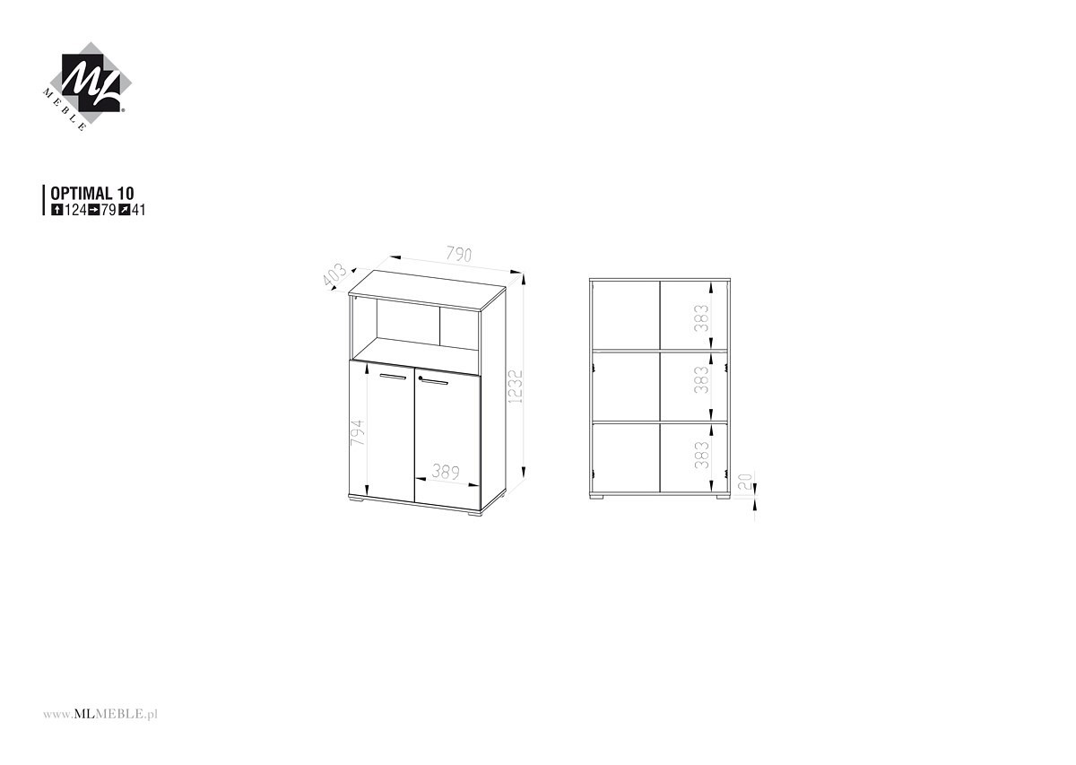 Komoda Optimal 10 to połączenie półki i szafki wyposażonej w smukłe, srebrne uchwyty, dzięki którym mebel nabiera nowoczesnego charakteru. Bryła wykonana została zwysokiej jakości płyty laminowanej o grubości 22 mm wzbogacone w obrzeża ABS 2 mm. Całość postawiona została na stabilnych, metalowych podstawkach. Kolekcja Optimal stworzona została z myślą o biurach, gabinetach i innych miejscach pracy. Charakteryzuje ją nie tylko nowoczesny, elegancki design, ale też zastosowane w części zamki, dzięki którym możemy mieć pewność, że wszelkie ważne dokumenty etc, nie dostaną się w niepowołane ręce.