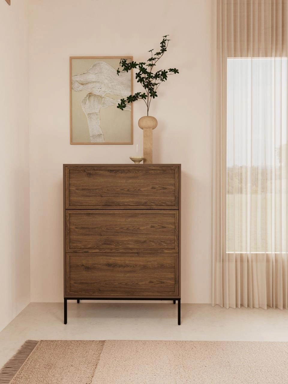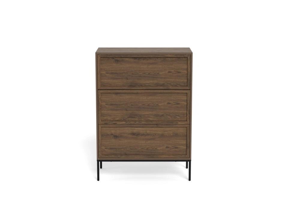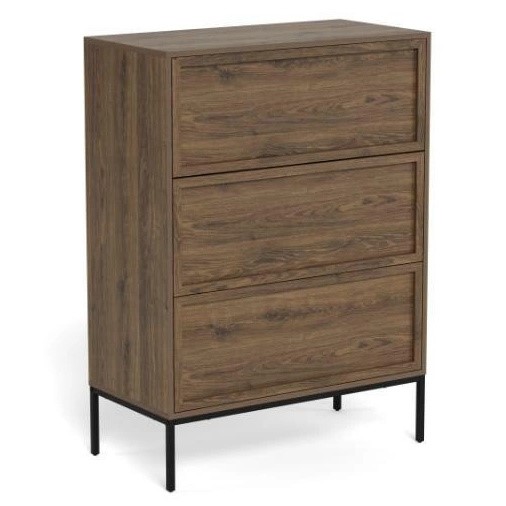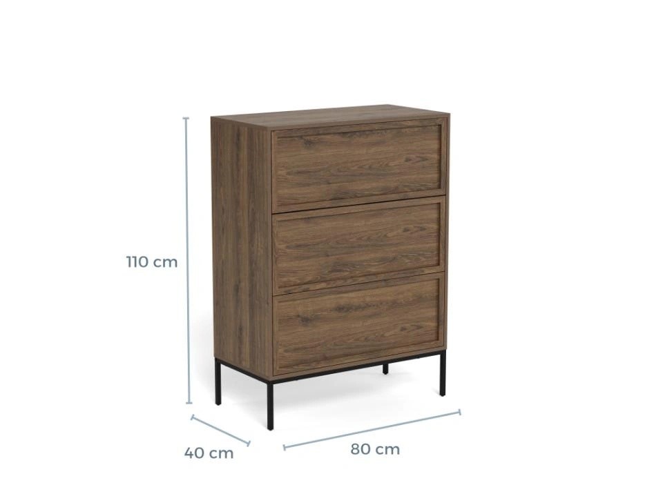 Komoda PALMDALE to praktyczny i uniwersalny mebel do przechowywania, który doskonale sprawdzi się w salonie czy sypialni. Dzięki pojemnym szufladom oraz półkom pozwala wygodnie przechowywać ubrania, dokumenty, akcesoria lub inne przedmioty codziennego użytku, pomagając utrzymać porządek w pomieszczeniu. Komoda może również pełnić funkcję dekoracyjną – na jej blacie można ustawić lampę, ramki ze zdjęciami, kwiaty lub inne ozdoby. Solidna konstrukcja oraz staranne wykonanie zapewniają trwałość i wygodę użytkowania przez długi czas. Uniwersalny design sprawia, że mebel łatwo dopasować do różnych stylów wnętrz.