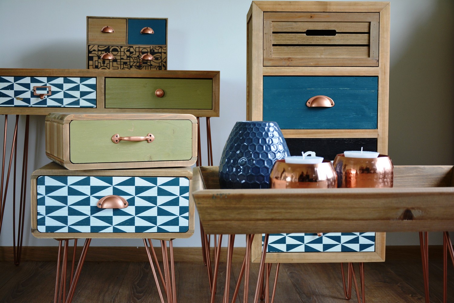 Spokojnie, to nie błąd w produkcji. Po prostu projektant zaszalał! :) Fakt, komoda jest nietypowa, ale właśnie chyba dlatego zachwyca. Jej kształt, kolory i okucia to prawdziwa gratka dla fanów stylu retro i awangardy . Cztery szuflady, o różnej wielkości, pomieszczą więcej niz Ci sie wydaje. Dzięki tej kolekcji Twoje wnętrze nabierze charakteru. Powiedz zdecydowane NIE nudzie w swoim mieszkaniu!